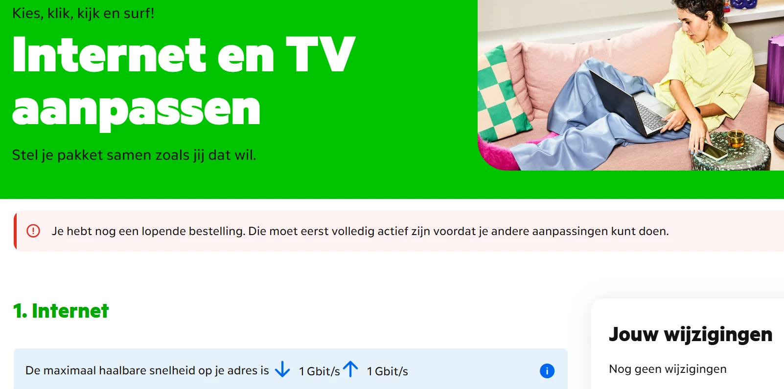 Voor mij geldt hetzelfde. Ook een brief gehad, maar nog steeds op 100Mbit en in mijn profiel kan ik niks wijzigen omdat er een lopende wijziging is.