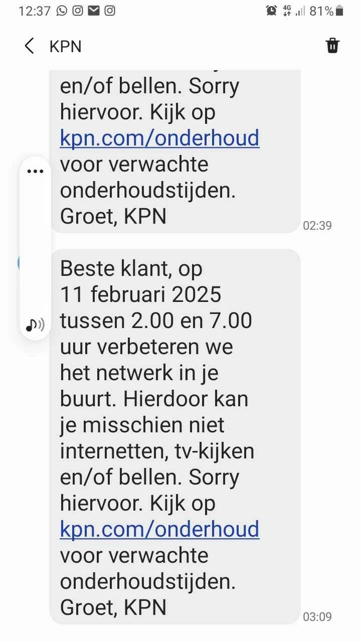 In principe hebben we geen eigen telefoonnummer en enkel de algemene klantenservice 0800-0402. Maar ook hun kunnen er weinig aan veranderen als de planning is verzet. Staat uw contact telefoonnummer wel goed in MijnKPN? Normaal hoort een uitval behandelaar (planner) te bellen als iets verzet wordt.