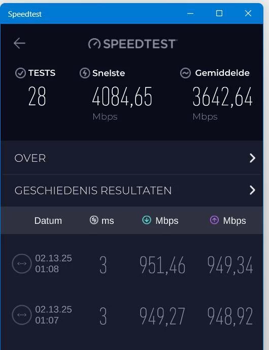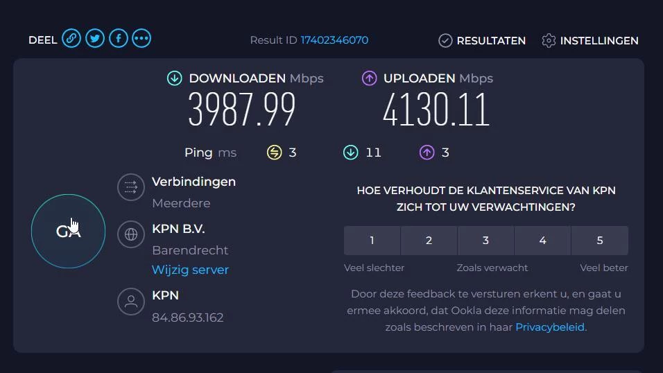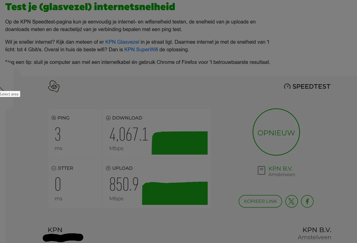 Als de speedtest op de KPN Box zelf wel zowat 4 gbit haalt maar jouw eigen pc lang niet, dat ligt het probleem toch wel bij jouw eigen pc en niet bij KPN.