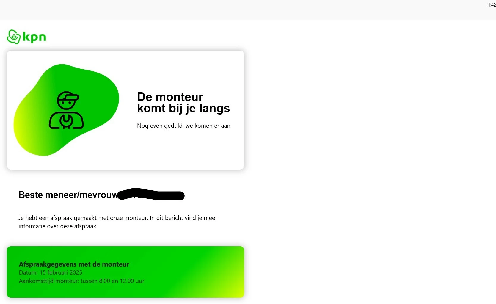 Duidelijk enkele keren gevraagt of het om mijn storing ging en de monteur die zou komen werd bevestigend geantwoord.