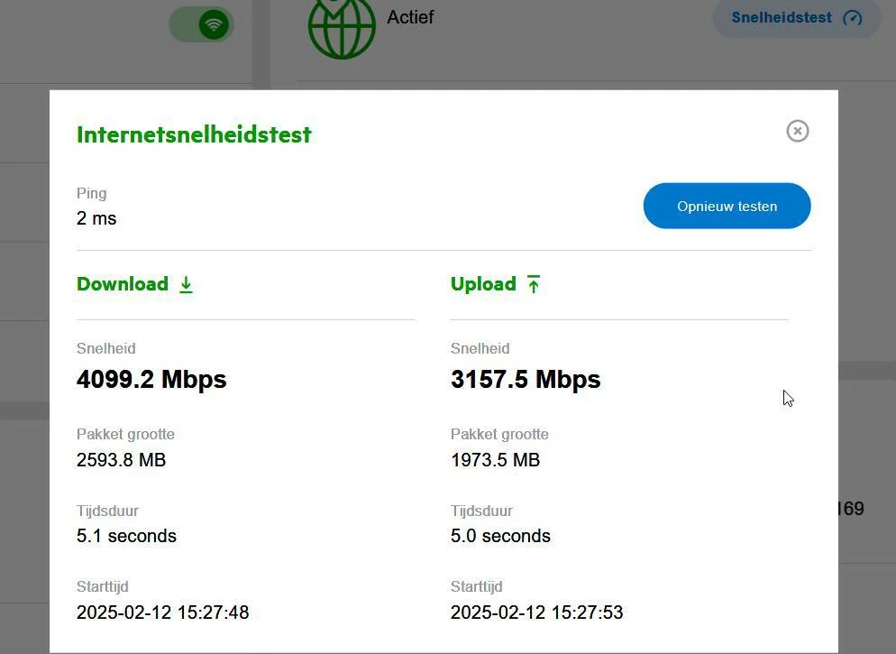 Ik zie dat er weer verbinding gemaakt wordt, en vrijwel meteen belt de monteur weer of ik een speedtest wil doen.