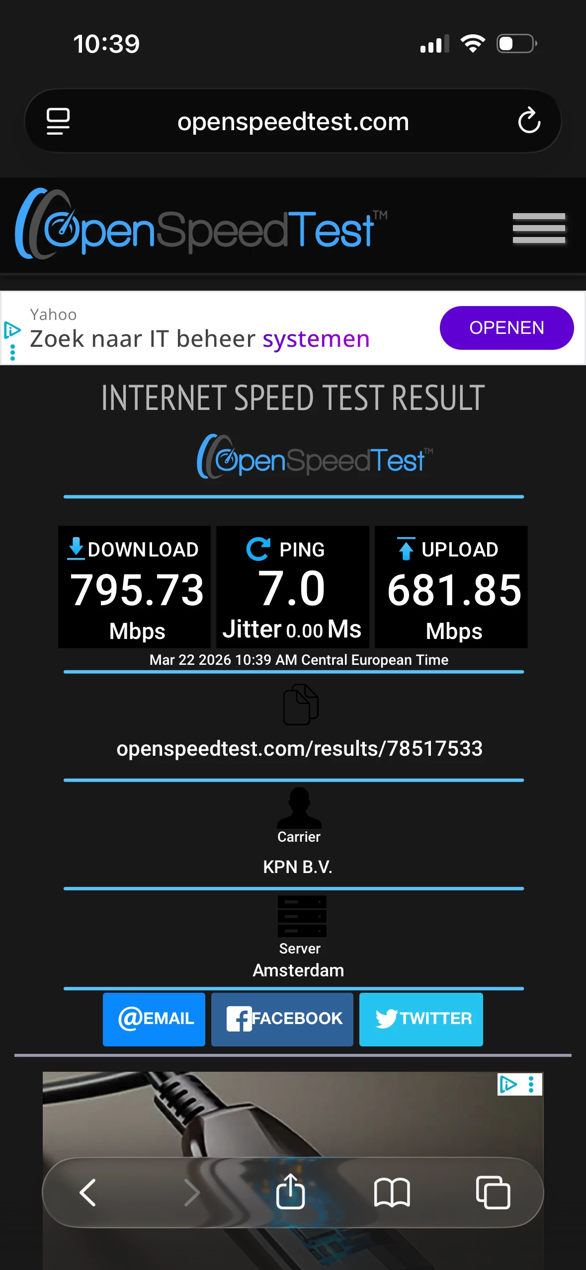 Het blijft wifi en die snelheden kunnen nu eenmaal fluctueren, dat is helaas inherent aan wifi. Maar als jij , zoals je nu aangeeft, op andere plekken wel een veel hogere snelheid haalt, ben ik het uiteraard met je eens dat het niet aan je iPhone ligt. Maar ik hoop wel dat je begrijpt hoe ik hier bij ben gekomen op basis van de informatie die je mij in je eerste bericht hebt verstrekt. Waar ik dan in eerste instantie benieuwd naar ben, is of je wel de volledige snelheid haalt als je dit met een bekabelde verbinding meet. Hopelijk kun je dit eens testen en laten we vanuit daar verder gaan kijken of er nog iets van winst is te behalen als het gaat om de snelheid van de wifi. Zie je bevindingen graag tegemoet!
