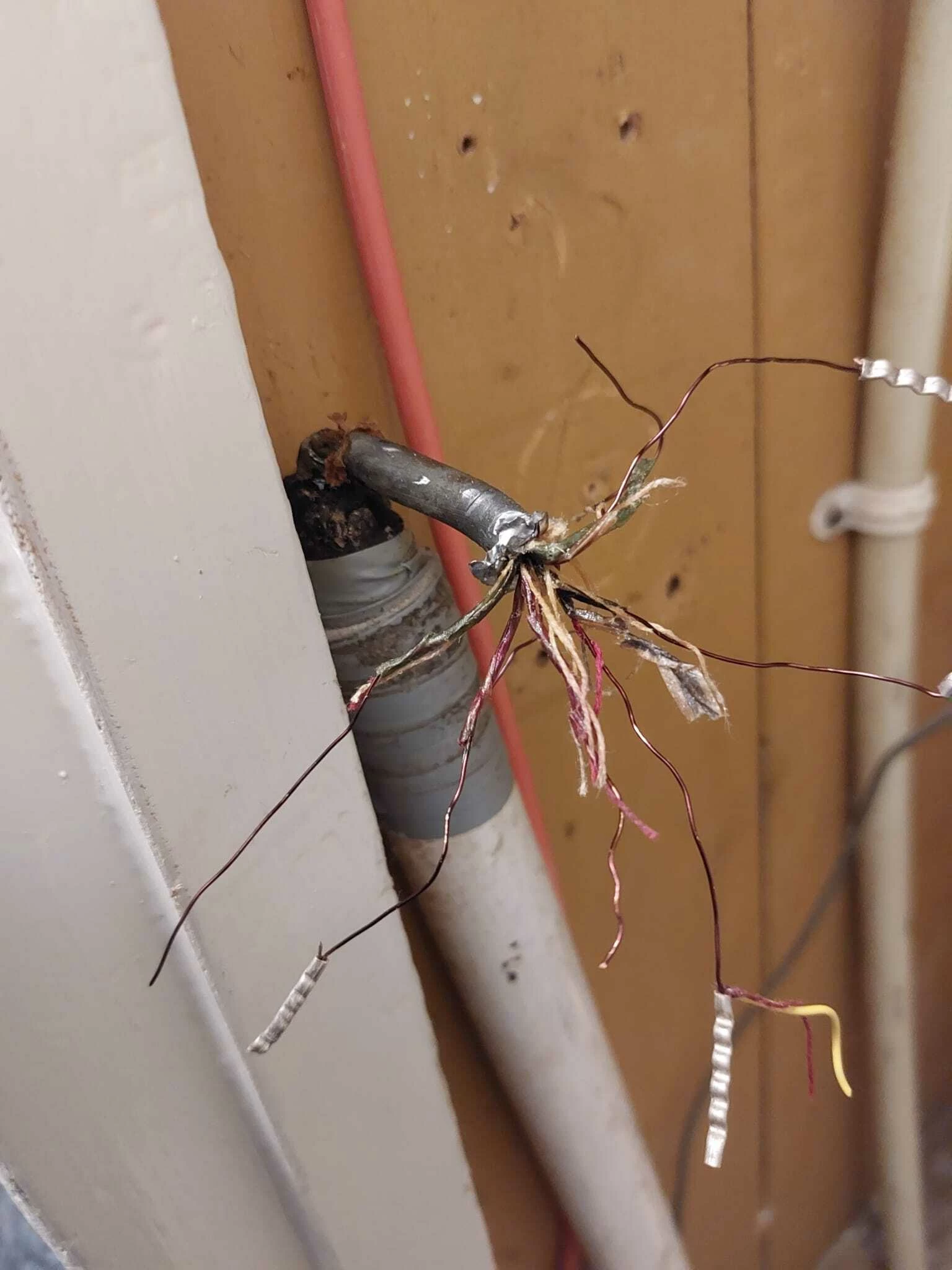 Is dit een appartement? Het lijken de draden voor de intercom. Als het een oud huis is zit de aansluiting mogelijk in de woonkamer. Bovendie zie ik een oranje kabel door de meterkast. Is dit een glasaansluiting?