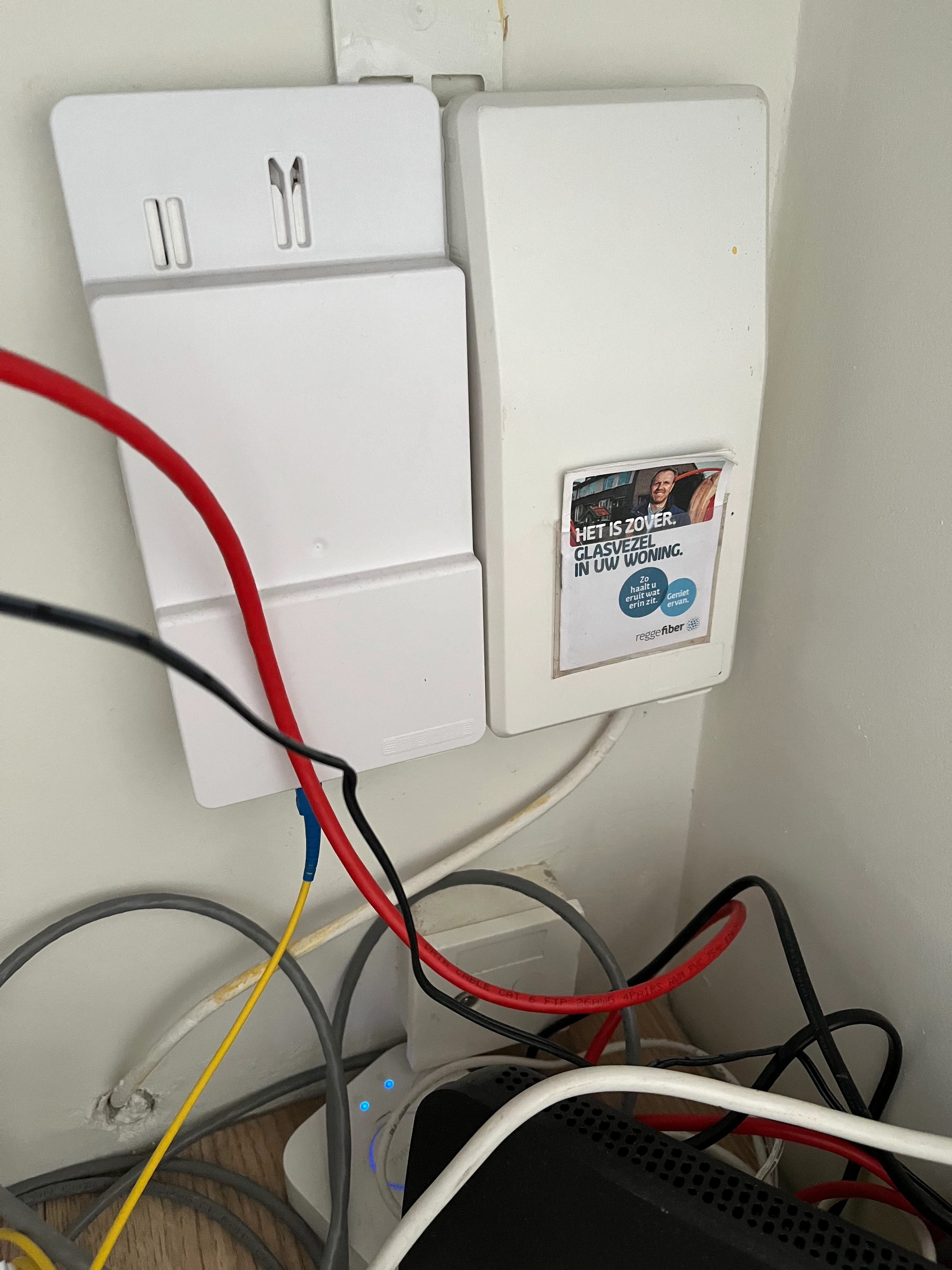 Eind oktober een monteur langs geweest voor installatie glas-koper converter en router.