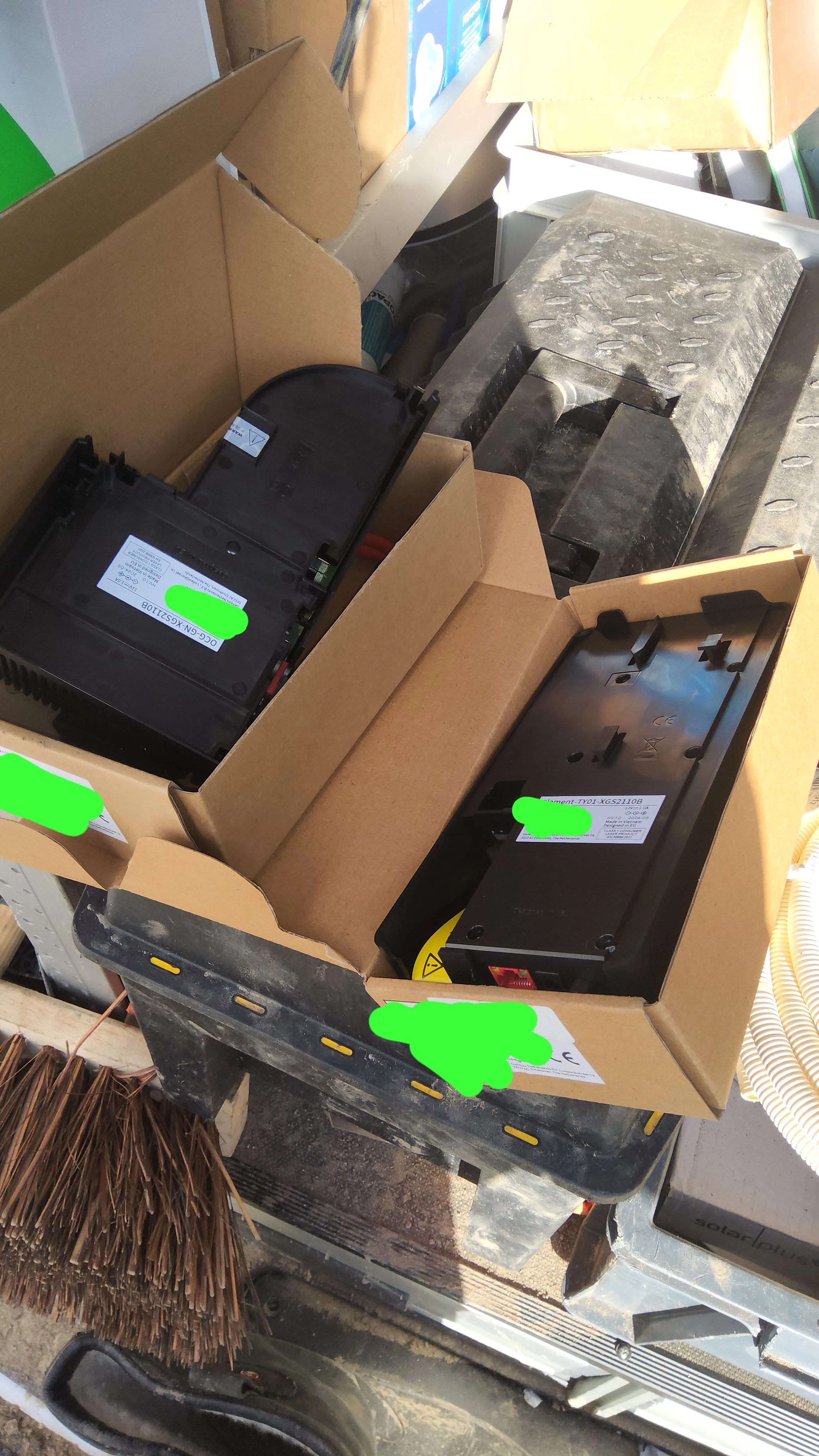 Ik denk dat dit wat oudere glasvezelaansluitingen zijn (er staat nog reggefiber op een van de kastjes). Op zich moet het wel mogelijk zijn om het laatste kastje in de keten (dat nu op de grond ligt) ook wel aan de muur te bevestigen. Nog mooier zou zijn als het aantal kastjes wat kan worden verminderd. Ik heb zelf alleen het laatste kastje (dat in de zwarte zit) aan de muur en een BOP in de grond. Dat is een iets minder rommelige aanblik dan bij jou.