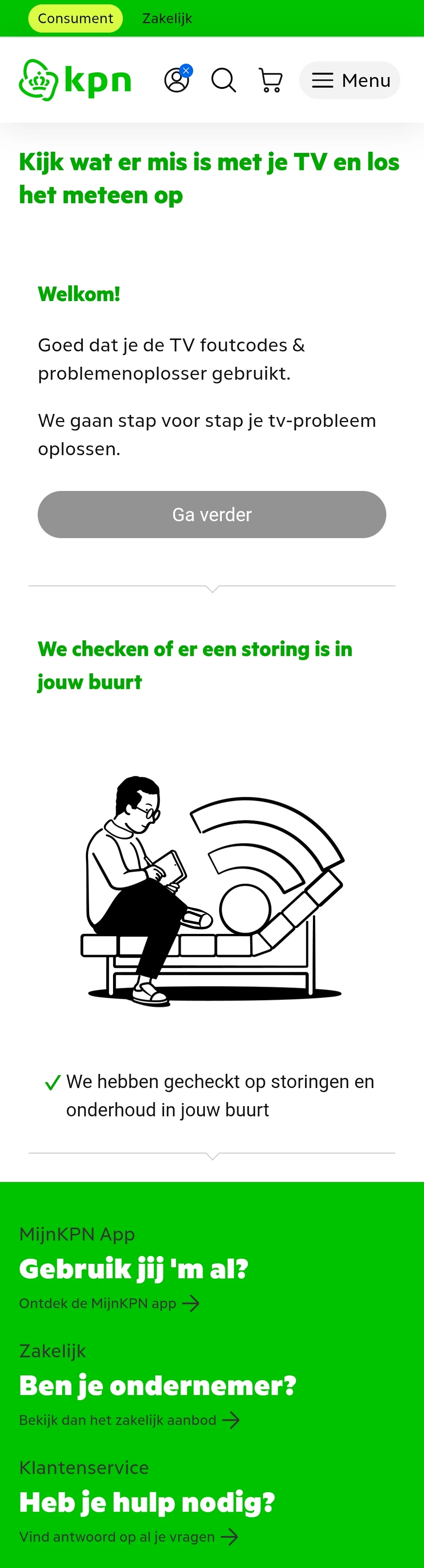 Ondertussen komt de app/site niet verder dan 'we hebben gecontroleerd of er een storing is' zonder verdere info of stappen (zie bijgevoegde afbeelding). En het wordt wel erg vervelend, er is de app maar in geval van mensen zonder smart tv is dat alsnog een gedoe met kabels of op klein scherm kijken.. plus dat de zender die we vanavond willen kijken (BBC, voor Strictly come dancing) niet eens te bekijken is via de app 'alleen thuis te kijken' zegt ie dan vrolijk, terwijl wij thuis zitten en gedwongen via de app werken.
