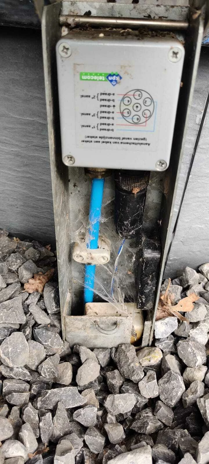 Advies van een monteur; laat een monteur komen 🤣 Wij hebben speciale apparatuur om de kabel een geluidje te laten maken zodat we hem makkelijker kunnen vinden. Verder is het bij dit soort aansluitingen (caravanpaaltje) sowieso handig om hier niks zelf aan te doen. Normaliter kan je niet eens zelf dit paaltje openen want daar hebben we speciaal gereedschap voor.