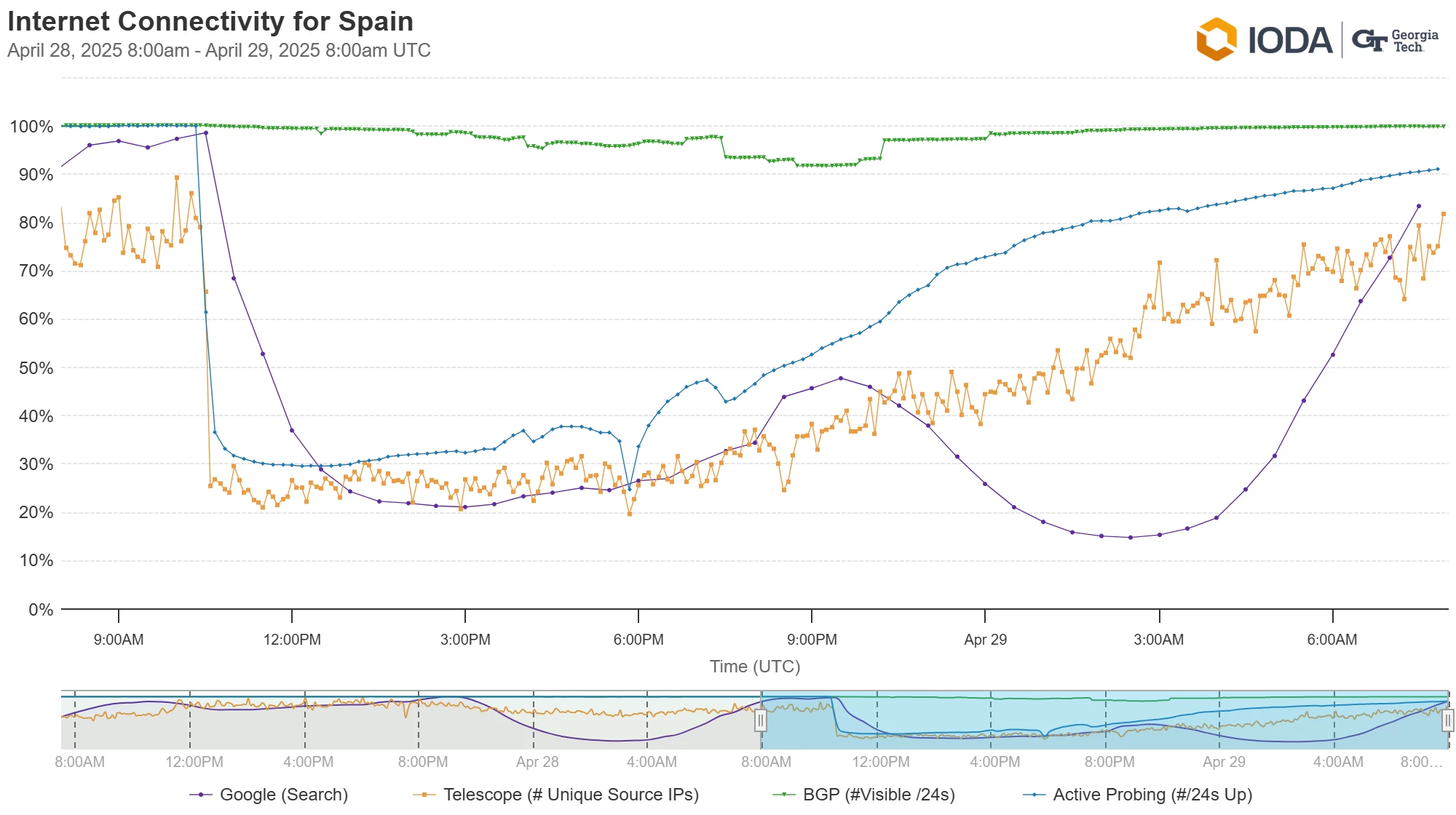 In een geval van grootschalige stroomstoring zoals in Spanje vorige week, is grotendeels internet ook onmiddellijk uitgevallen.
