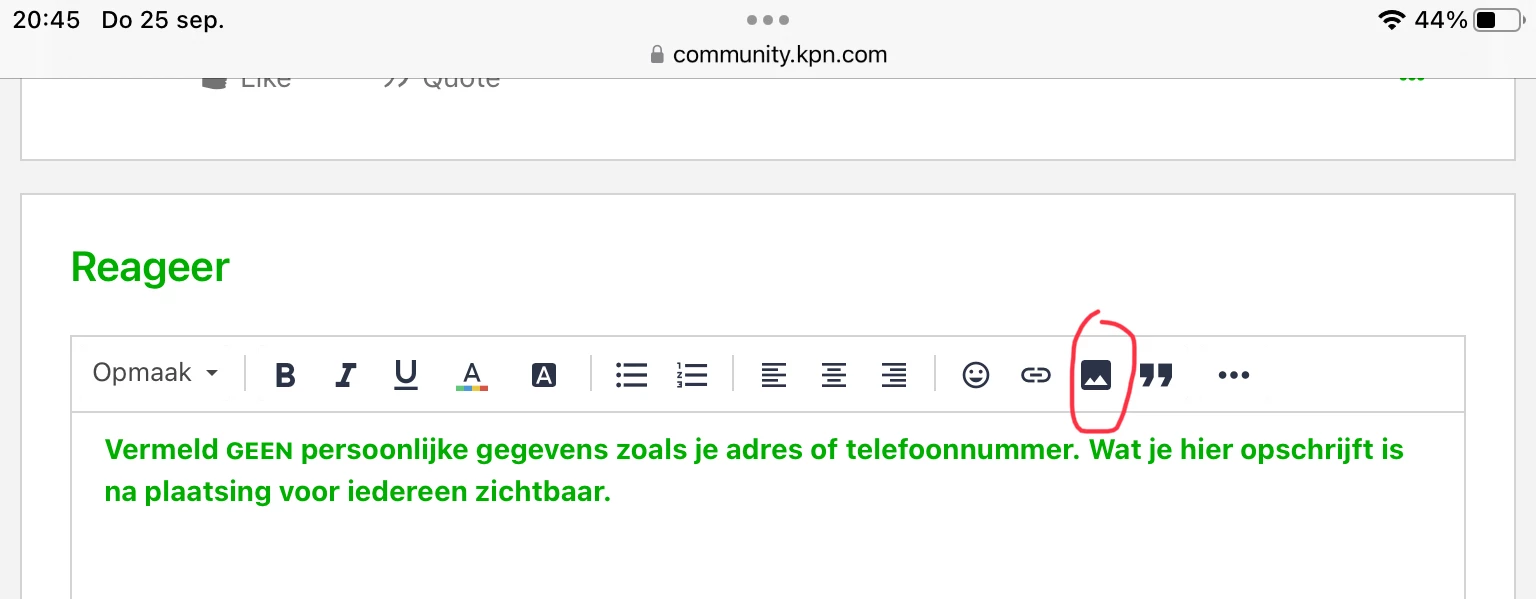 Met die knop kun je foto’s toevoegen.