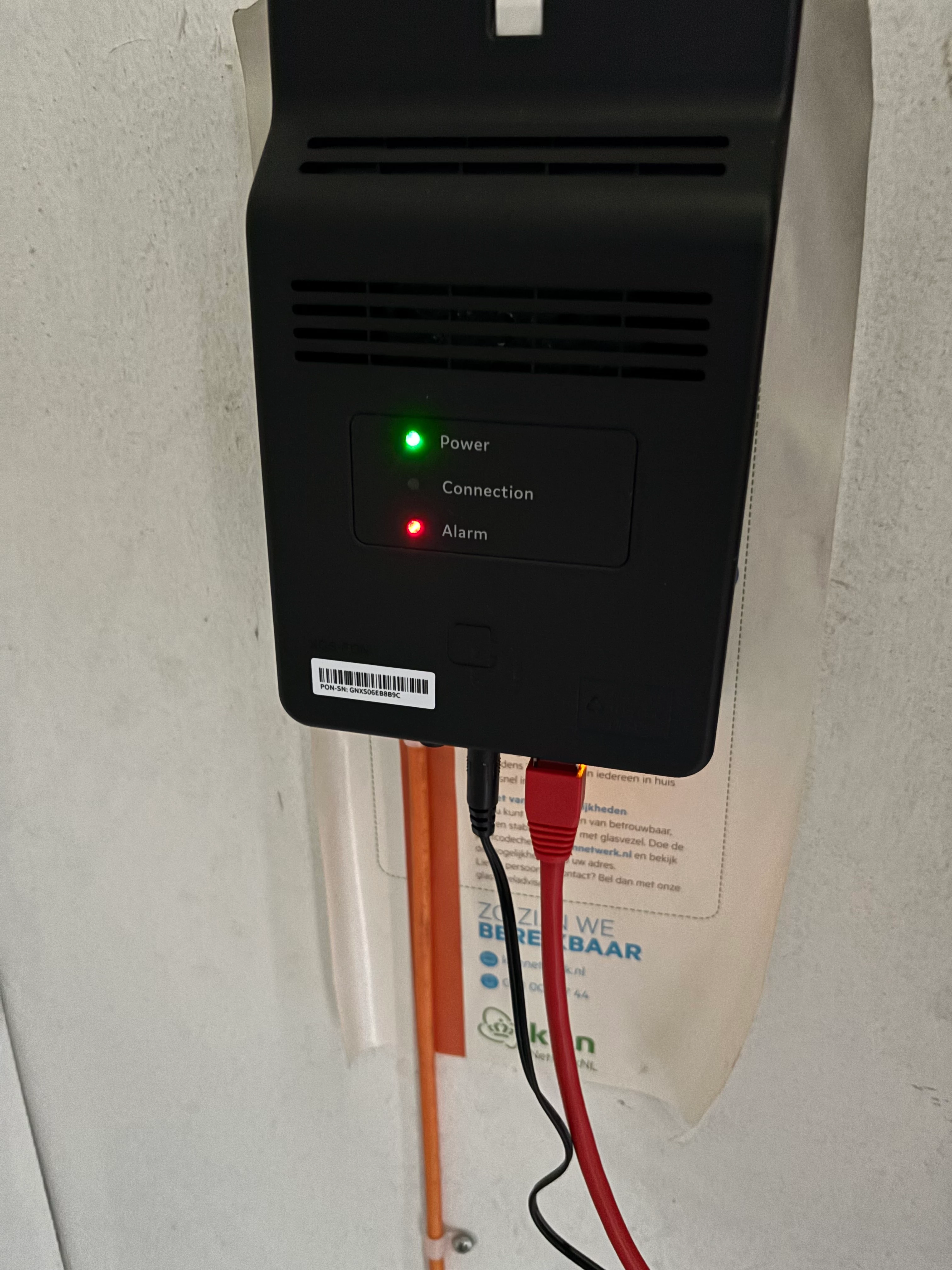 Internet werkt niet, connection is uit en alarm brandt rood op glasvezelkastje