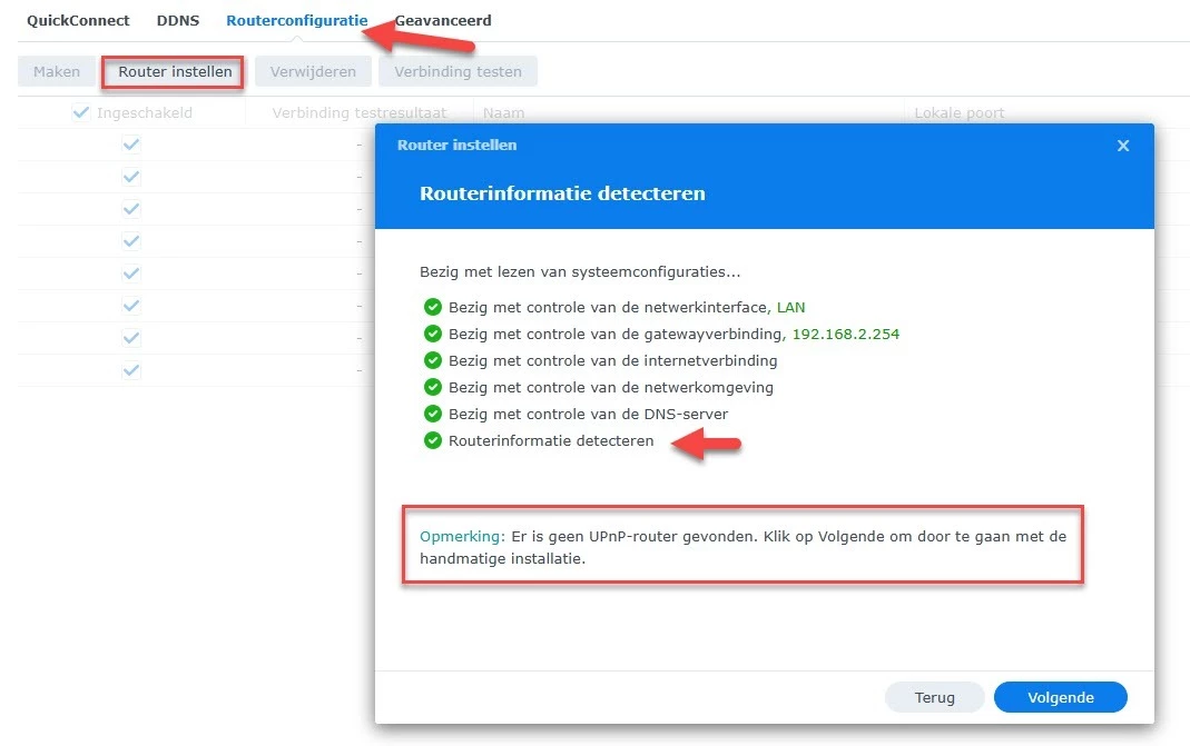 Het leek allemaal voortvarend te gaan echter vanaf extern kan ik mijn NAS niet meer benaderen. Mede om dat Synology de routerconfiguratie van de KPN Box 12 niet kan vinden. Hele avond bezig geweest om dit voor elkaar te krijgen.