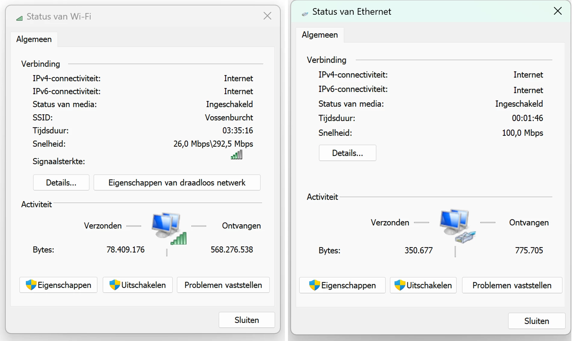 Hoe meet je dat ​@Han Bekkers , want eerder schreef je dat je niet bekabeld kon testen omdat je laptops geen LAN-aansluiting hebben?