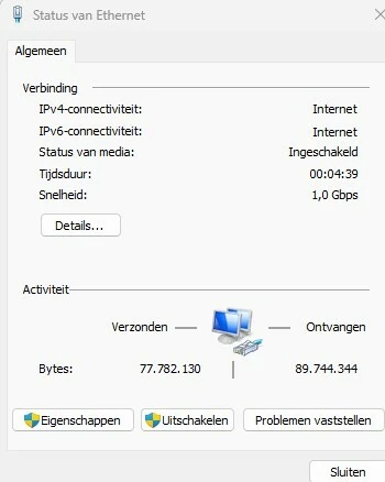 Dat rechtse plaatje status ethernet geeft 100 Mbps aanm dat moet dus 1 Gbps zijn volgens onderstaand plaatje van mijn pc: