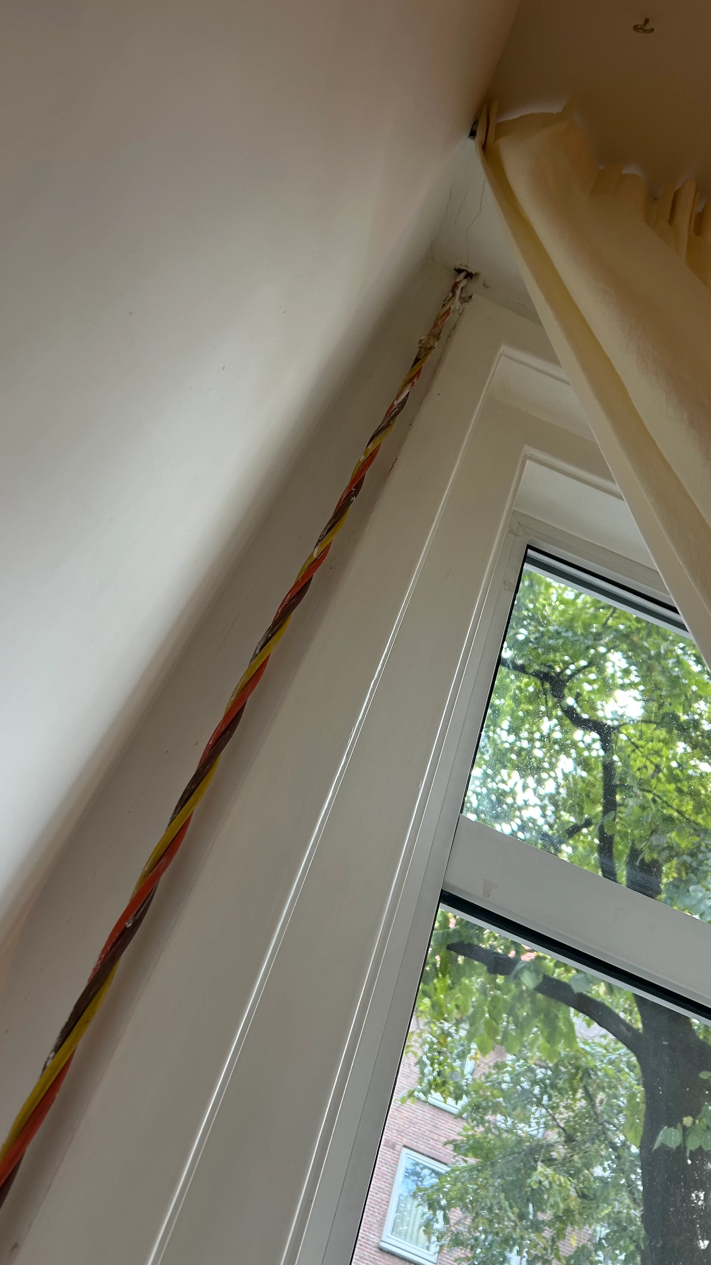 Wij hebben recent een huis gekocht en hebben deze kabel in de woonkamer aangetroffen (verstopt achter een gordijn). Omdat wij de woning opnieuw gaan inrichten, zit deze kabel behoorlijk in de weg. We vragen ons af of deze kabel nog actief is en of dit eventueel anders kan worden opgelost of netjes kan worden weggewerkt.