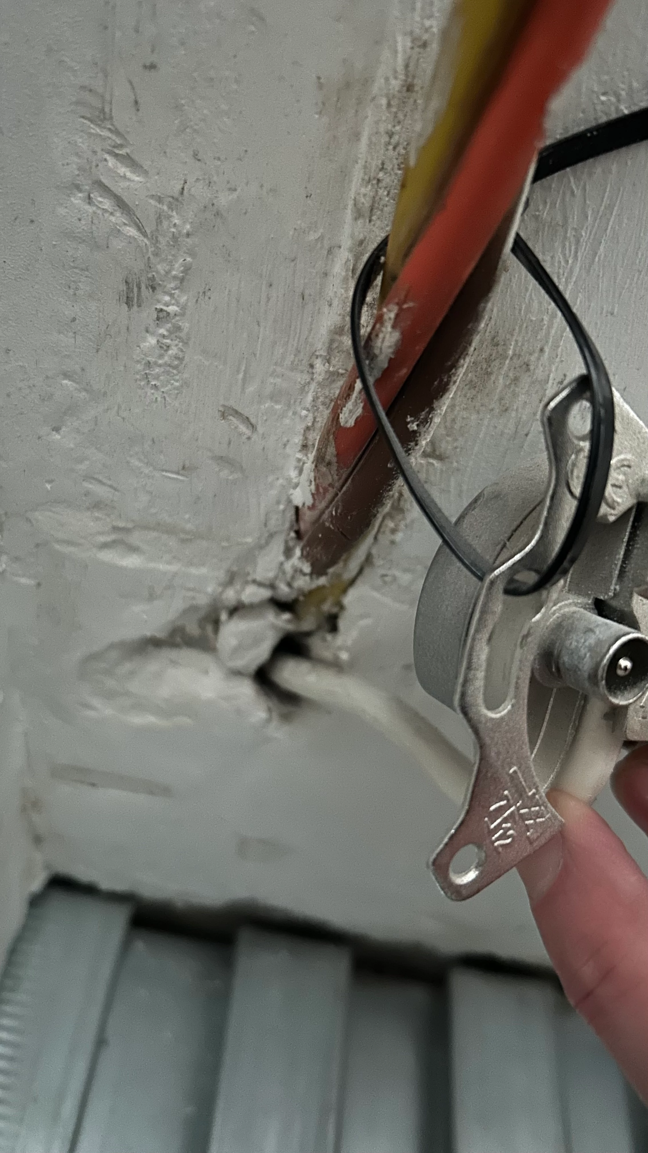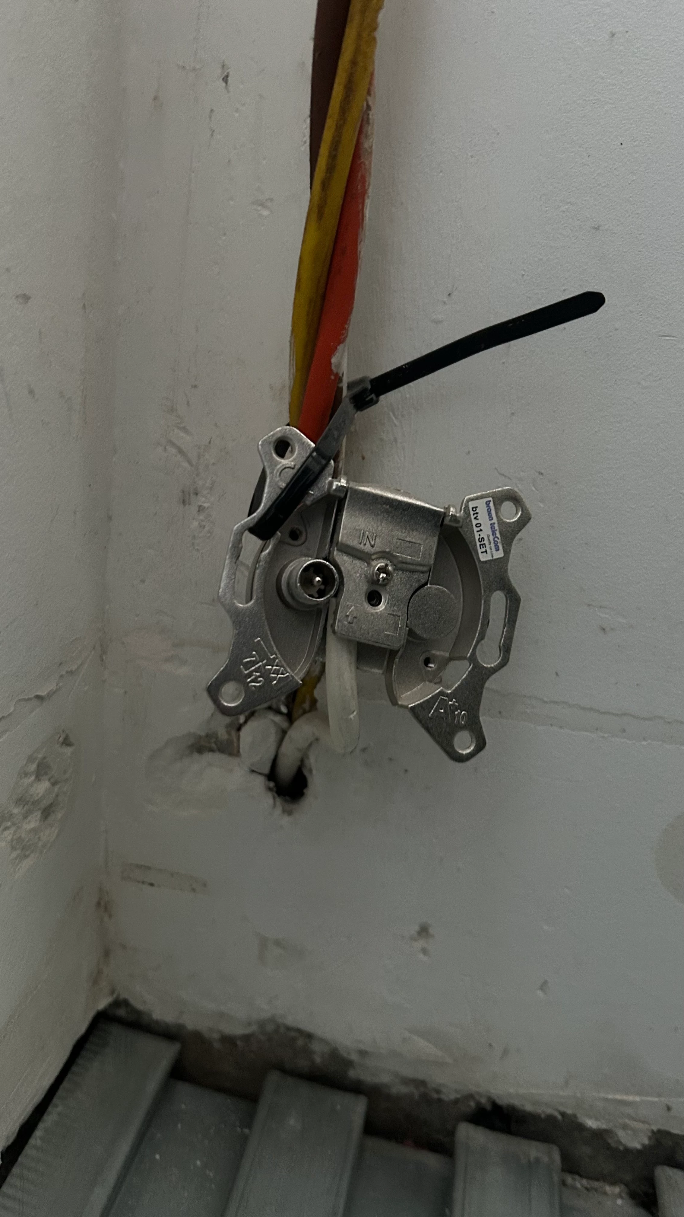 Kan je een duidelijke foto maken van dat kastje onderin? Als ik ook meedenk zou het ook coax kunnen zijn.