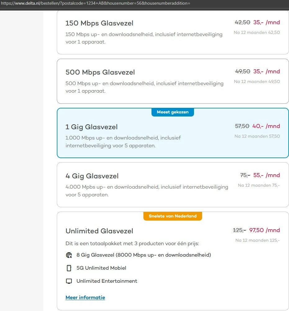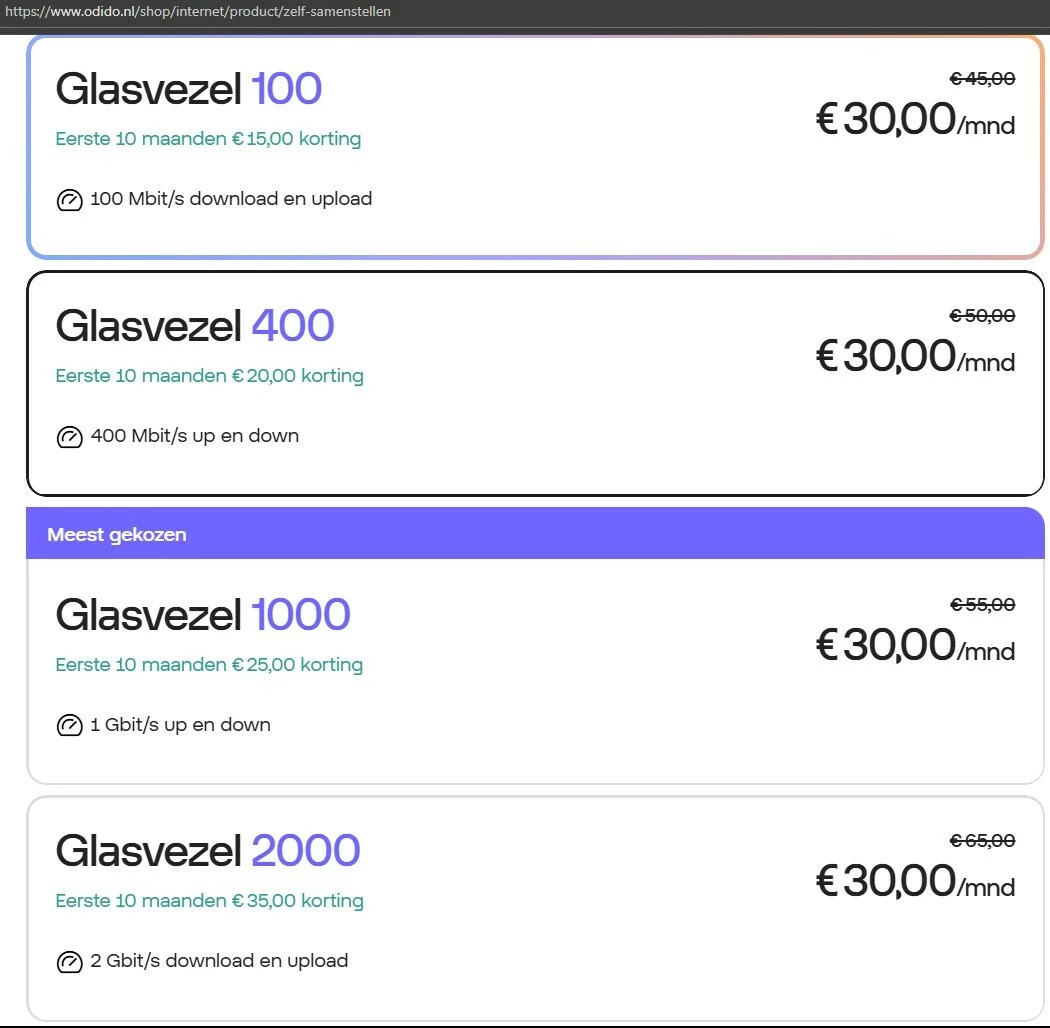 Er is een andere aanbieder met snelheid hoger dan 1Gbs op hetzelfde adres is Odido