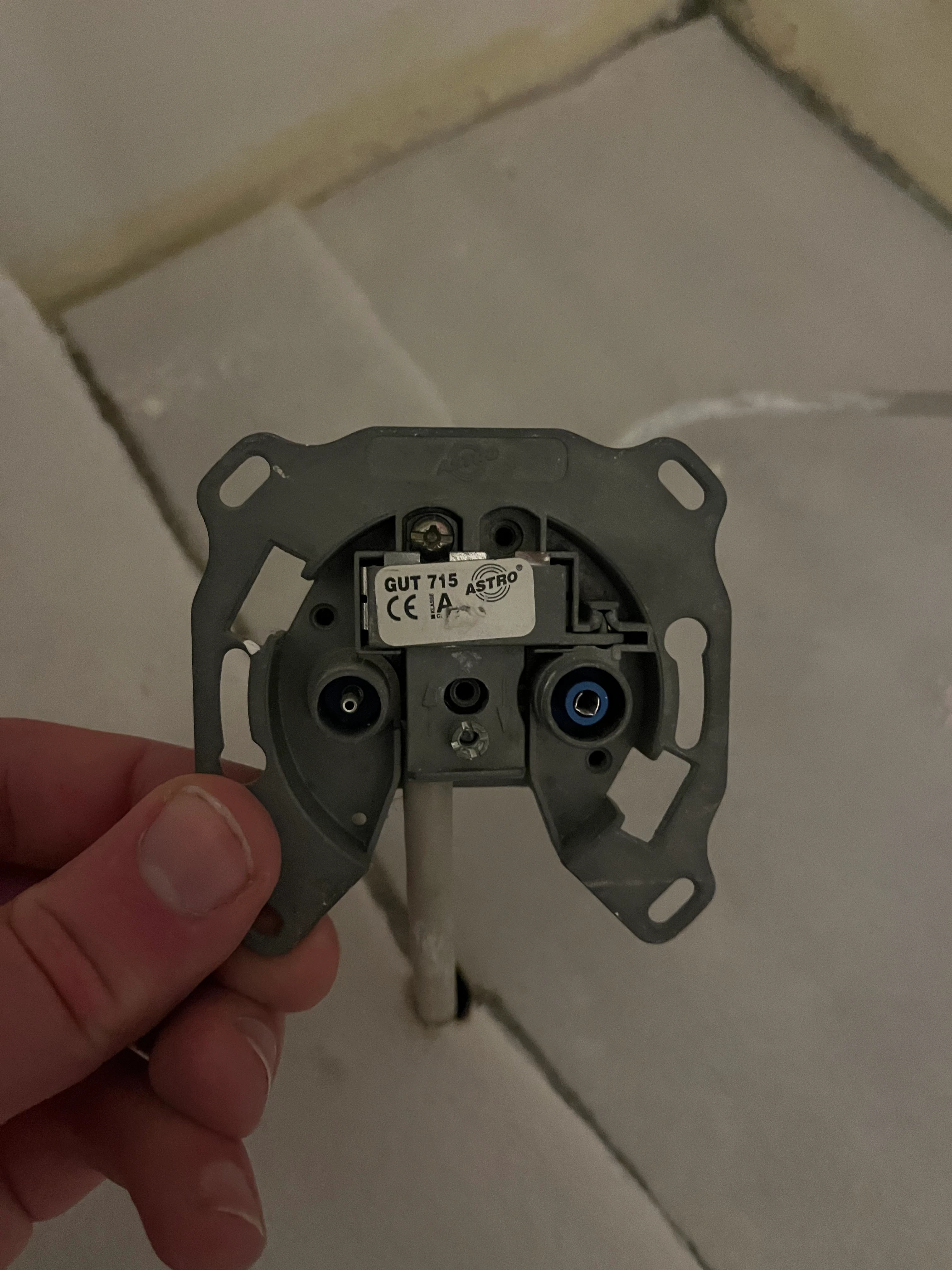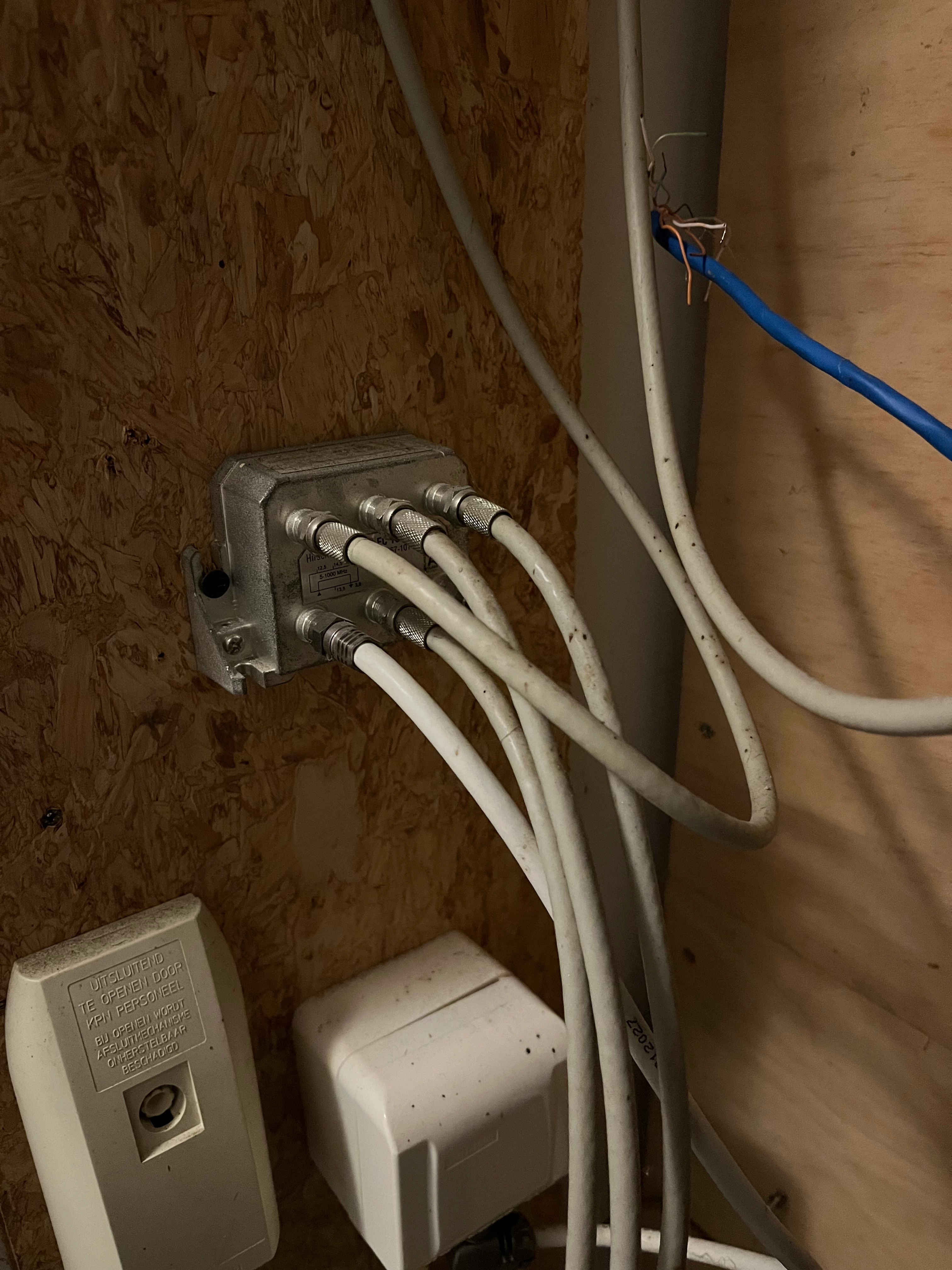 Ha community! Dank voor de hulp zo ver fantastisch dat jullie zo betrokken zijn 😀 Het is weer weekend en dat betekend dat we weer in het huis zijn. Het is inderdaad een blauw wit contact (zie foto). In de meterkast lopen aardig wat draden die volgens ons (denken we) eigenlijk niet meer echt een functie hebben. Zo lopen er 3 coax kabels door het huis (volgens mij overbodig tegenwoordig?) en is er eentje al afgeknipt in de meterkast te vinden. We zijn momenteel bezig met laminaat leggen en een coax aansluiting ligt eigenlijk random in de kamer (zie foto’s). Kunnen wij die er uit trekken?
