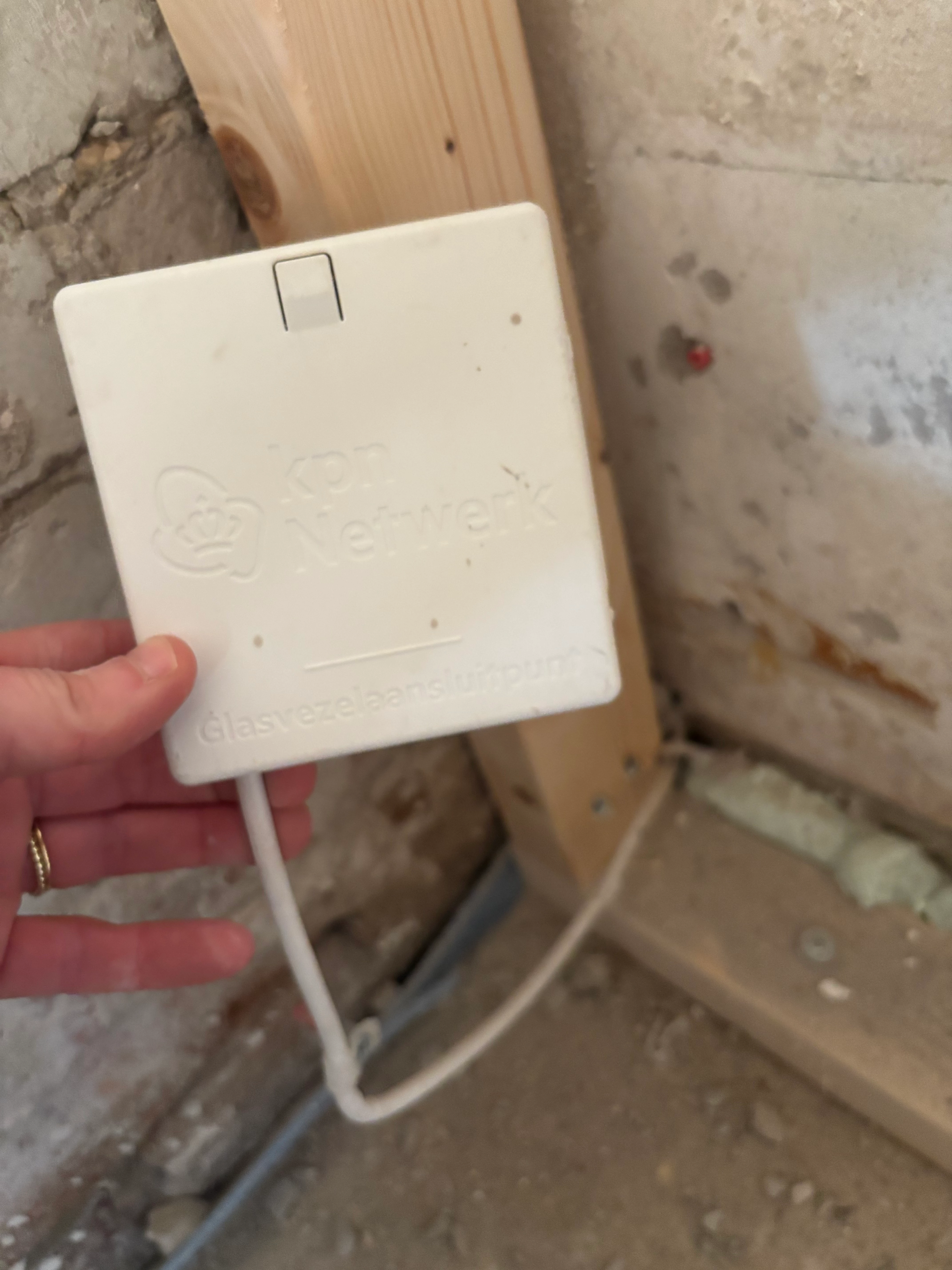 Wij zijn bezig met een totaalrenovatie van onze nieuwe woning. Nu zagen wij een wit kastje ‘glasvezelaansluiting’ in de woonkamer (zie foto). Maar we zien geen oranje kabel?