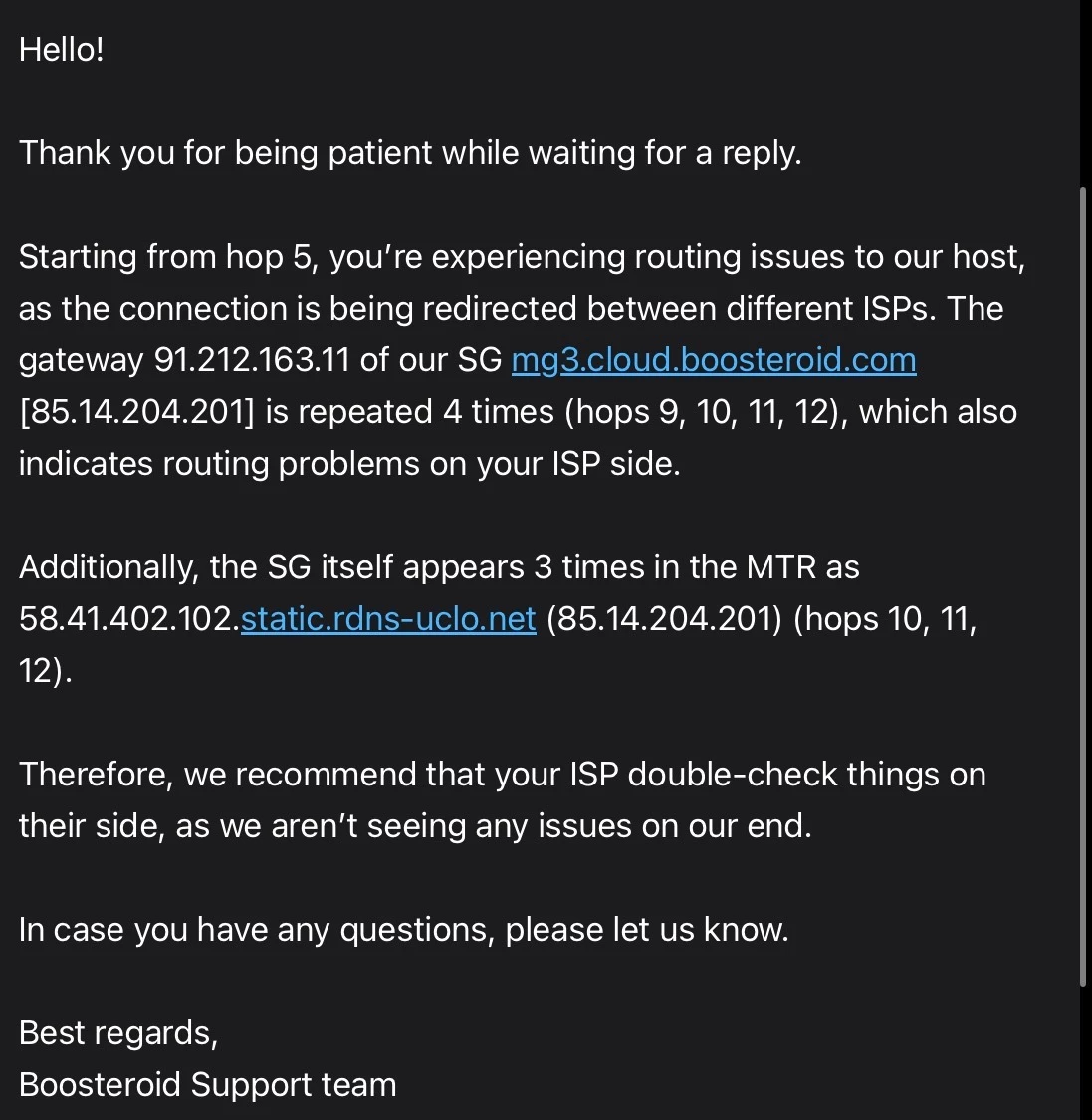 → Once your traffic reaches Boosteroid’s hosting network, it’s fine.