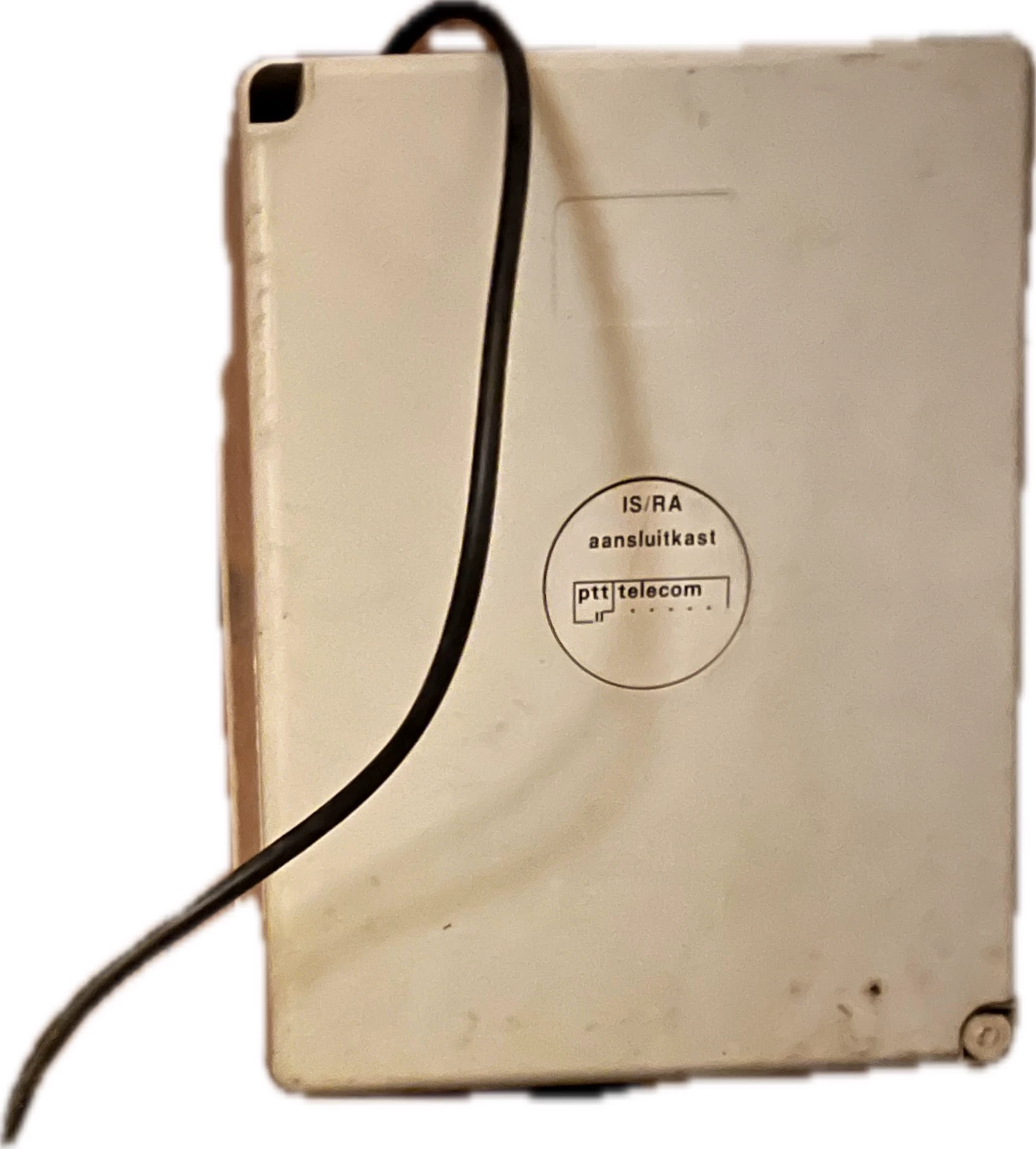 Het deksel is ook niet eens vastgemaakt. Binnen zie je dat er maar 1 draad is aangesloten.