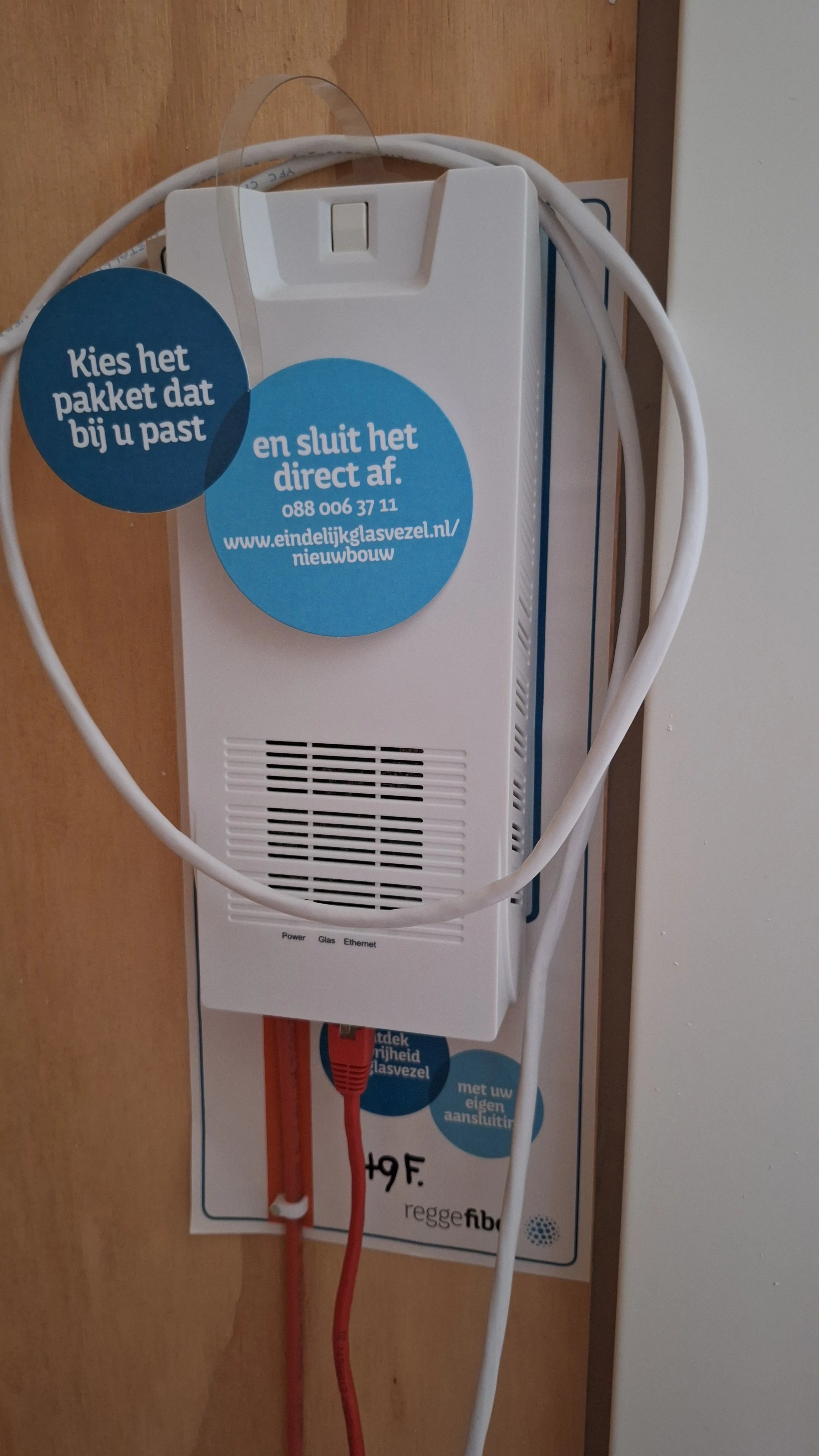 Ik ben verhuisd naar een nieuw appartement. Er zat al een glasvezelkastje geïnstalleerd van de vorige bewoner. Ik heb een abonnement bij kpn afgesloten. Bij het installeren kwam ik er achter dat ik een stroomkabel voor het glasvezelkastje mis (foto's van het kastje en aansluiting zijn bijgevoegd). Ik heb getest met de kabel van het modem, en die lijkt te werken, maar dah heb ik geen kabel voor het modem. Dus zonder deze kabel heb ik geen internet. Kan ik deze kabel via jullie krijgen?