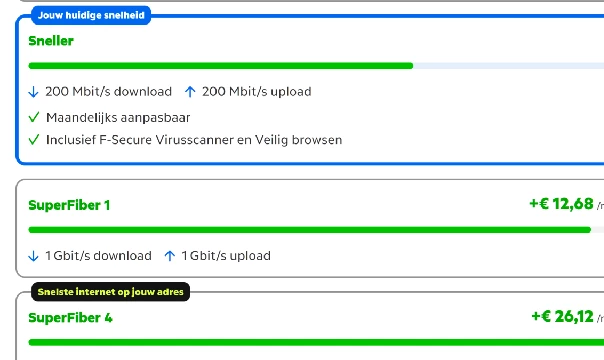 Hoi ​@Intrepid, aan het screenshot te zien is glasvezel in ieder geval aan te vragen op jouw adres. Als het in huis is aangesloten zoals je noemt klopt dat ook. Maar welke je nu gebruikt is een goede vraag. Ben je nog verbonden met de DSL/koper kabel, of is het glasvezelkastje al in gebruik genomen?