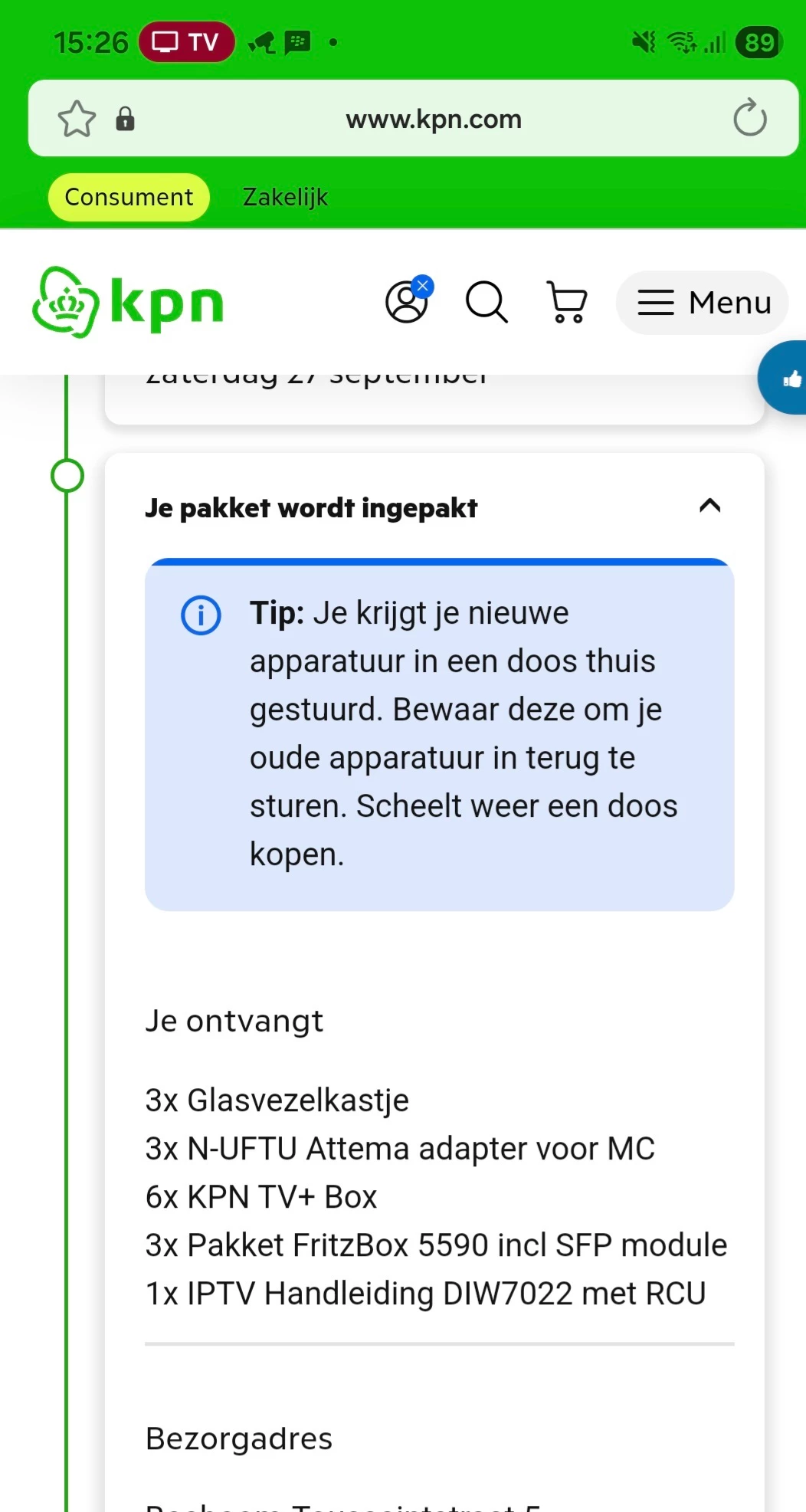 • 27 september 2025: contract verlengd én upgrade besteld (4 Gbit + Fritz!Box 5590 + SFP-module + 2 TV-ontvangers).