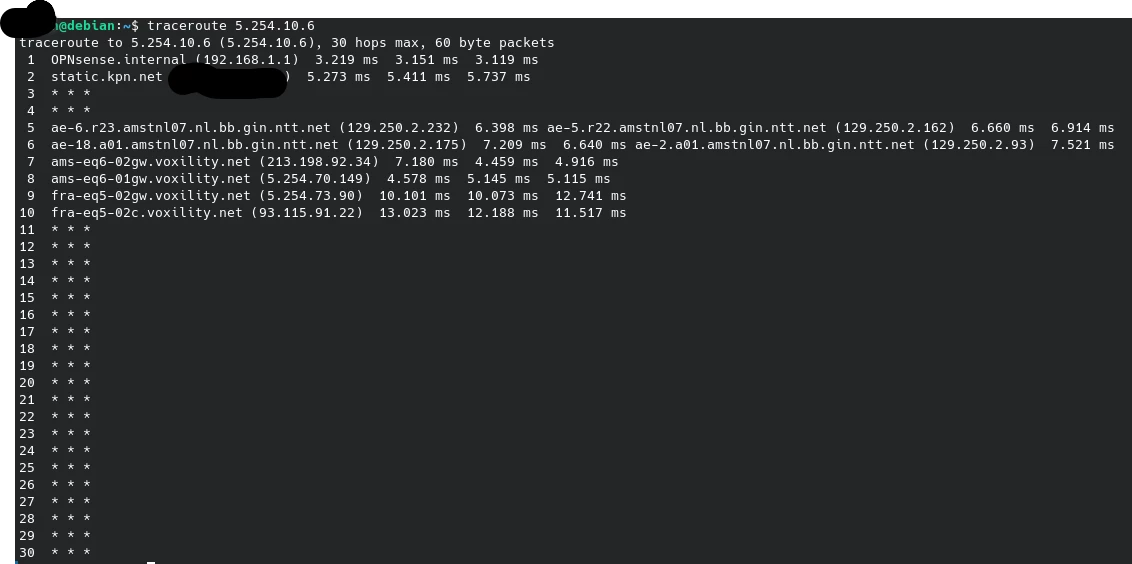 Dit is een tracerout (Linux) van mij naar het eindadres 5.254.10.6.