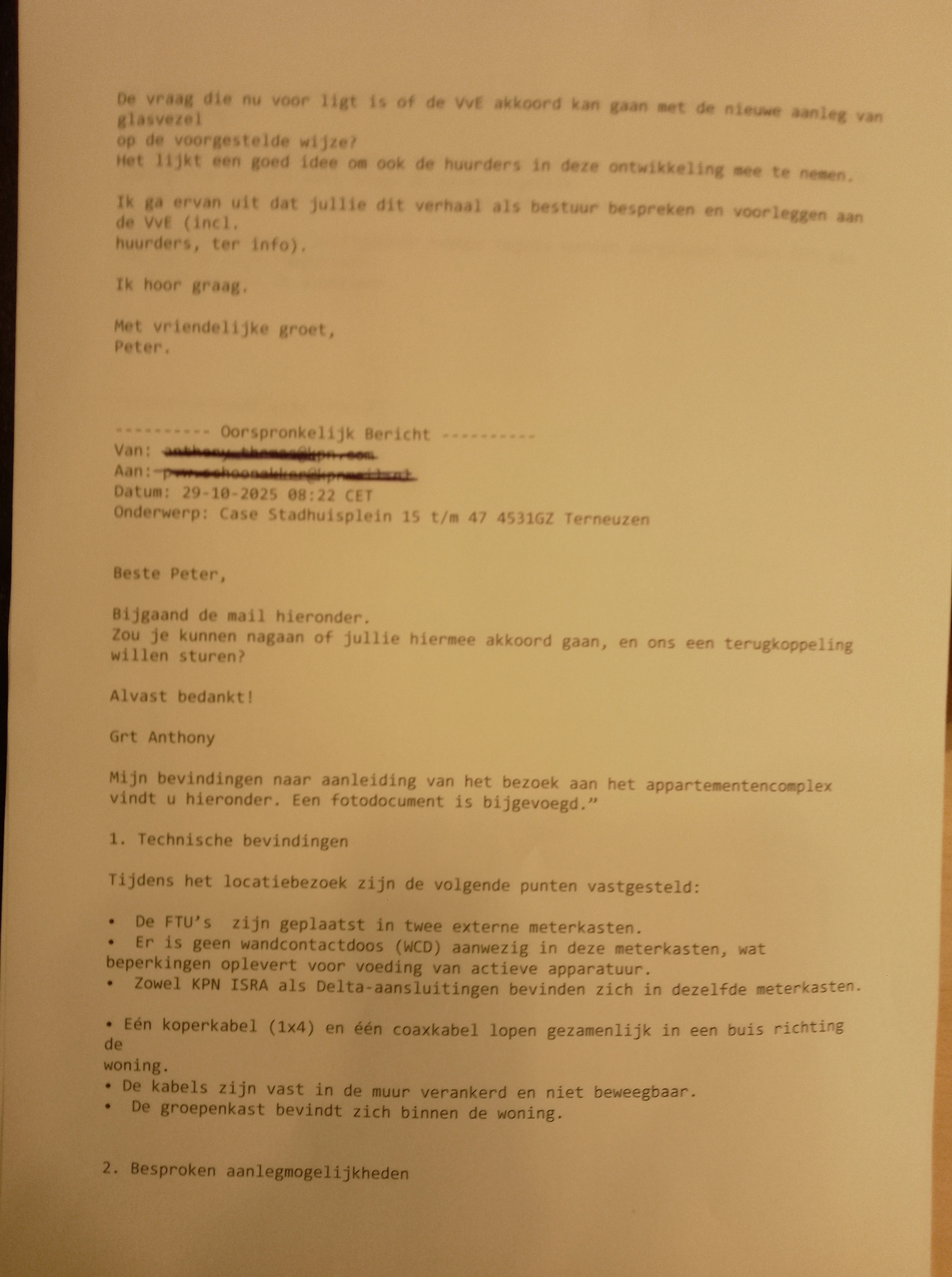 we hebben voor de duidelijkheid nog geen glasvezel in de appartement zelf in de meterkast  benedenen in de centrale ruimten