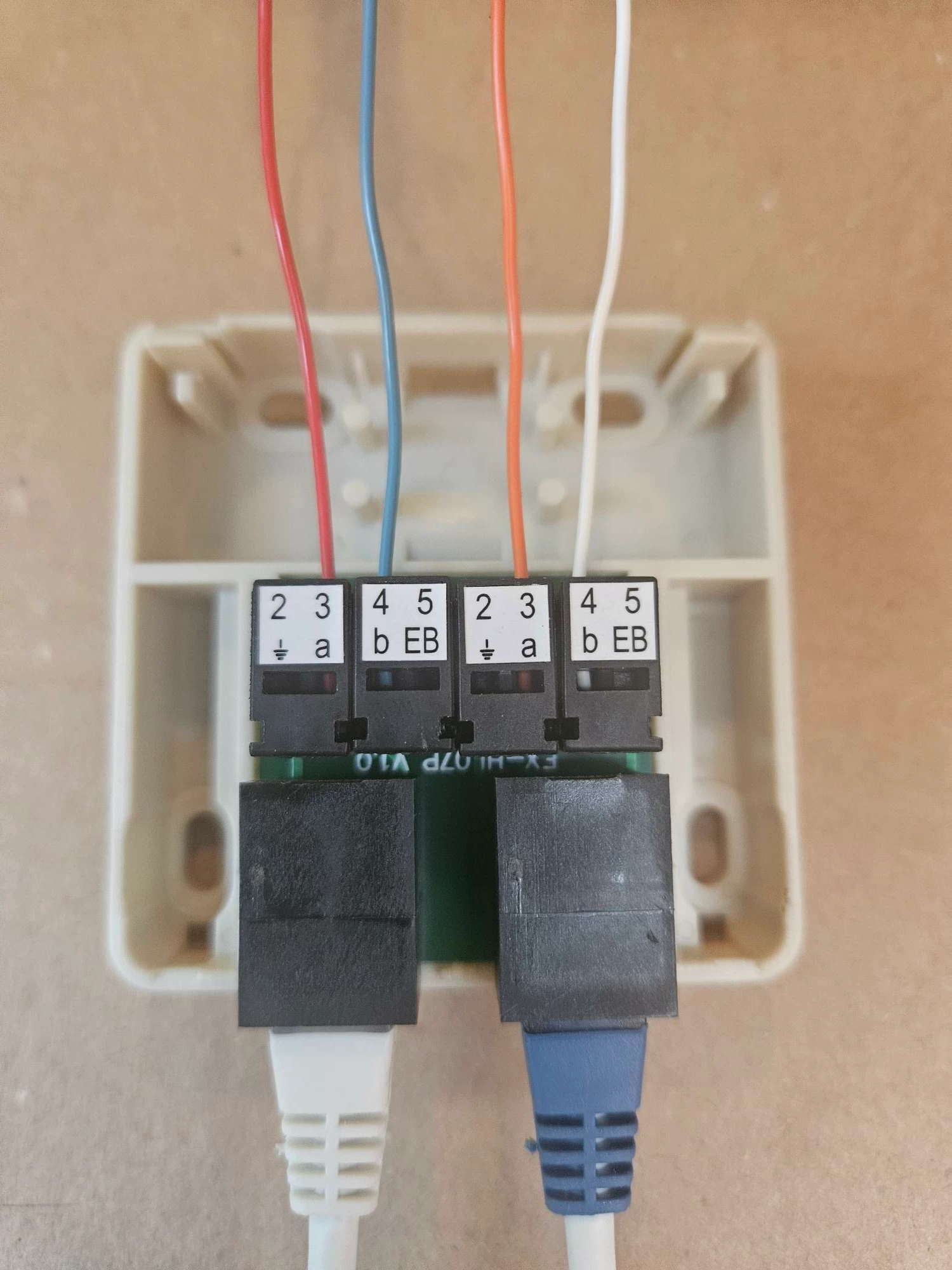 je kunt dat doosje rechtstreeks op de kabel aansluiten die vanuit de lasdop komt.