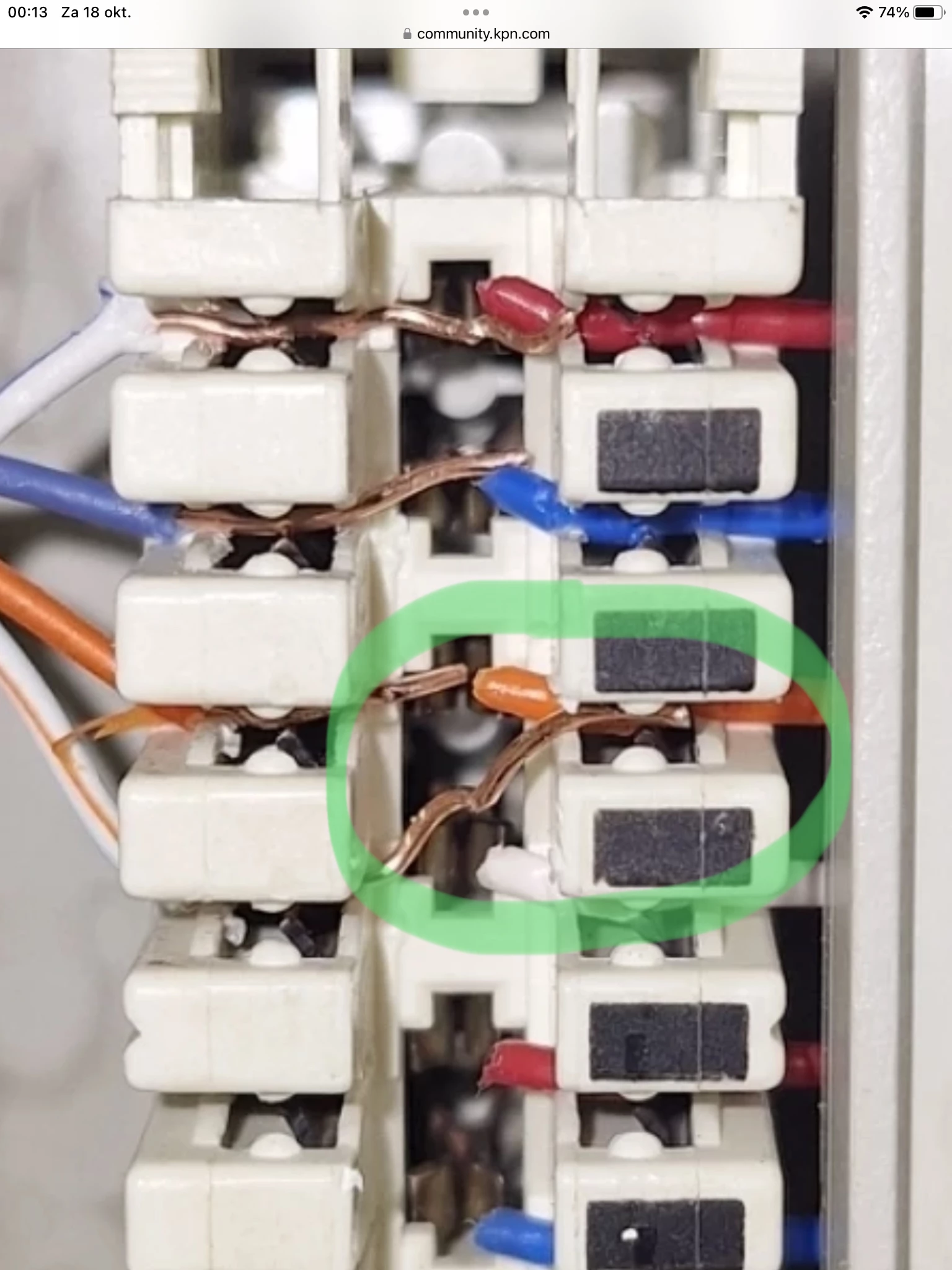 Dit ziet er goed uit behalve dat het koper afgeknipt moet worden en je het plastic door moet drukken. Aan de rechter kant van de LSA strook zie je ook allemaal kleuren kabeltjes en die zijn ook niet gestript. Als je dan nog steeds geen signaal hebt zijn we hier benieuwd naar de andere kant van de kabel waar je nu een foto van maakt, en als alles daar goed is aangesloten wordt het tijd voor een monteur.