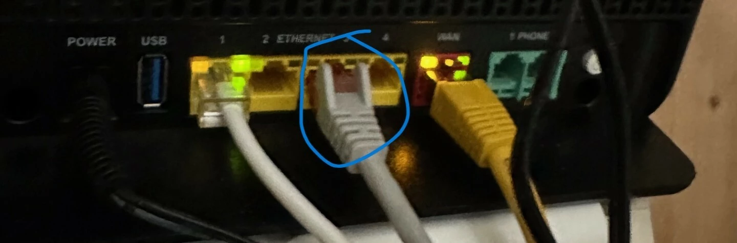 De kabel is gelegd en maakt geen verbinding met de versterker. Ook het LAN lampje op het modem, waar aan de versterker gekoppeld is, blijft uit. Ook andere LAN poorten geprobeerd maar geen succes. Kabel is wel goed aangesloten.