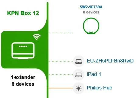 De KPN Wifi Versterker is binnen. Hoe kan ik zien of ik verbonden ben met de versterker ipv het modem? Want helaas is de verbinding nog niet veel beter geworden.