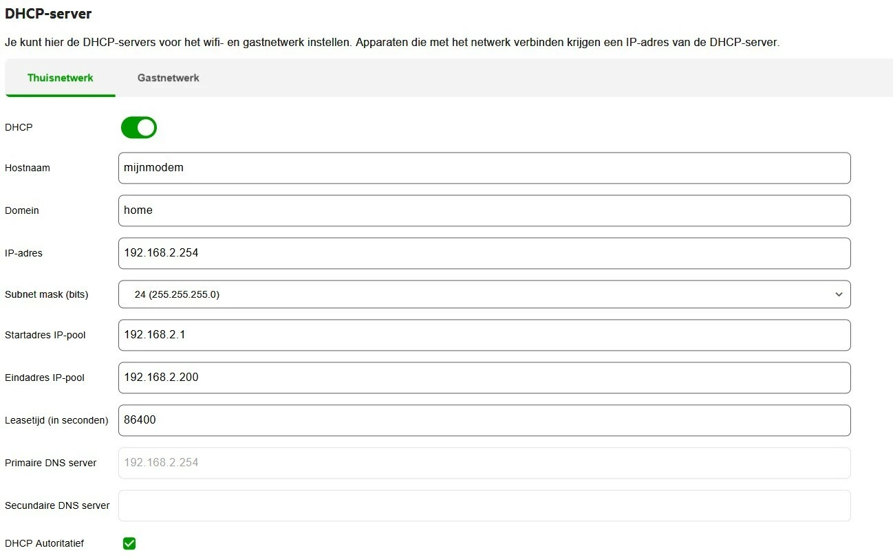 Dito geldt voor het gastnetwerk. IP adres primaire DNS MOET gelijk zijn aan het IP adres van het Kpn modem in het gastnetwerk.