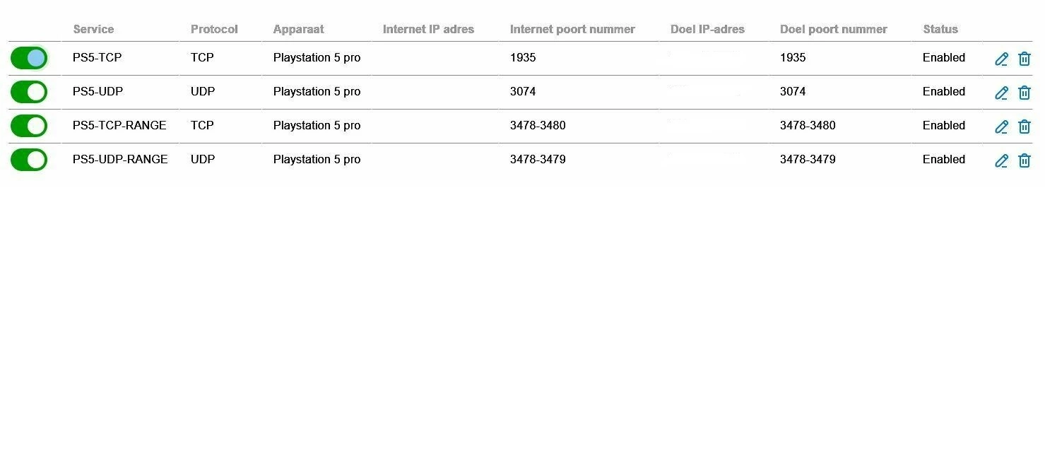 Doel IP adres staat bij mij ingevuld met het IP wat die van mijn PS5 en is door een forum admin weggehaald i.v.m. privacy.