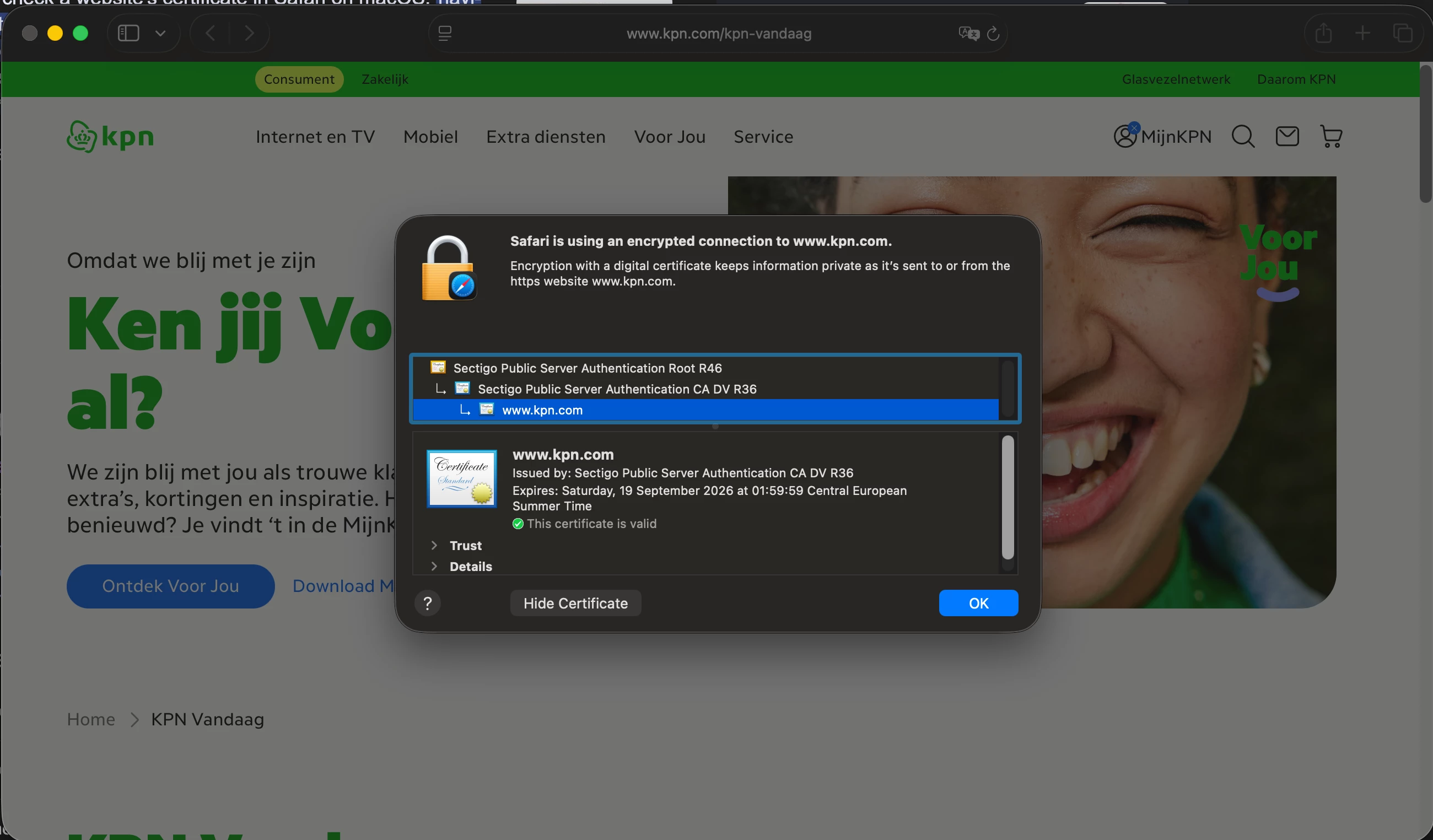 Safari kan geen beveiligde verbinding tot stand brengen met kpn.com/kpnvandaag