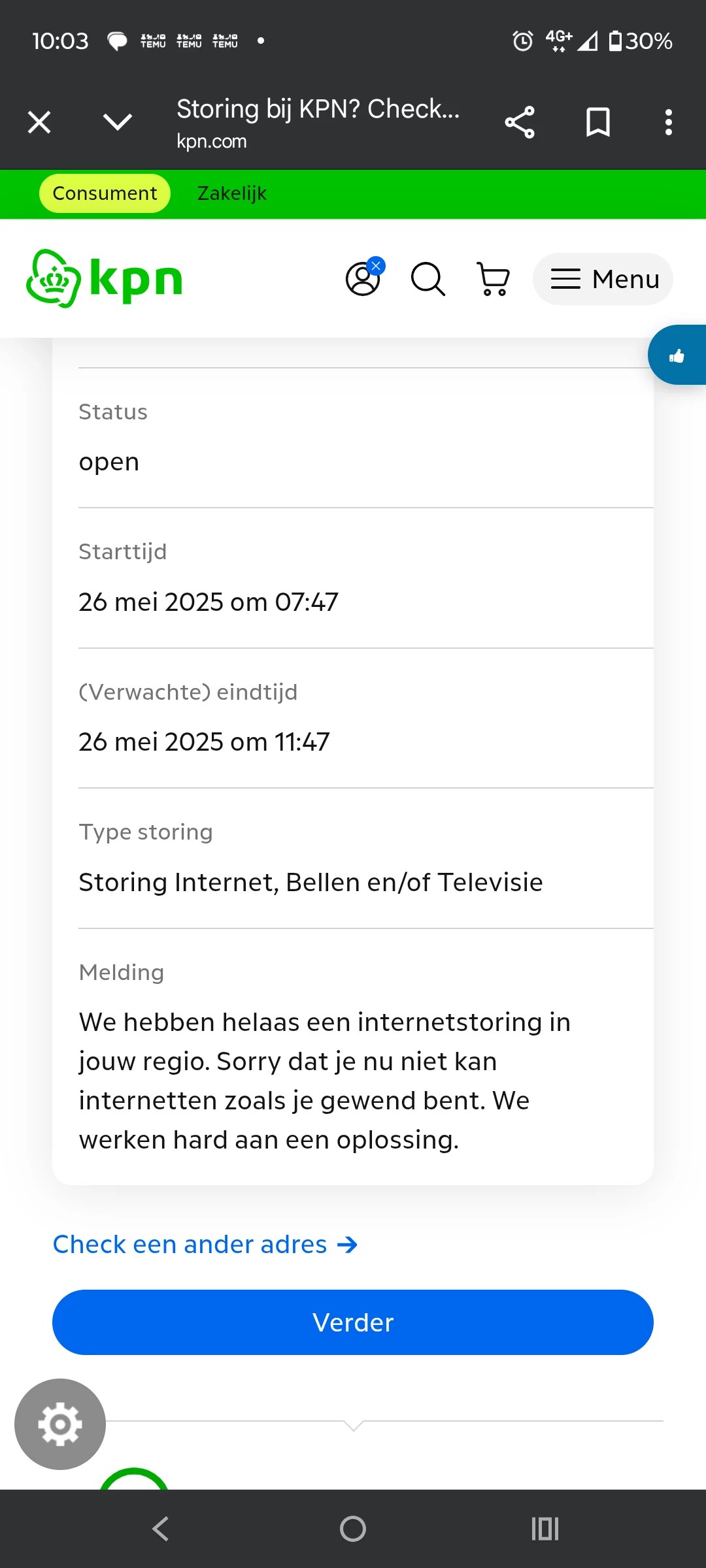 Ik zie ook dat je in je bericht aangeeft dat je ‘weer’ storing hebt. Heb je dit vaker?