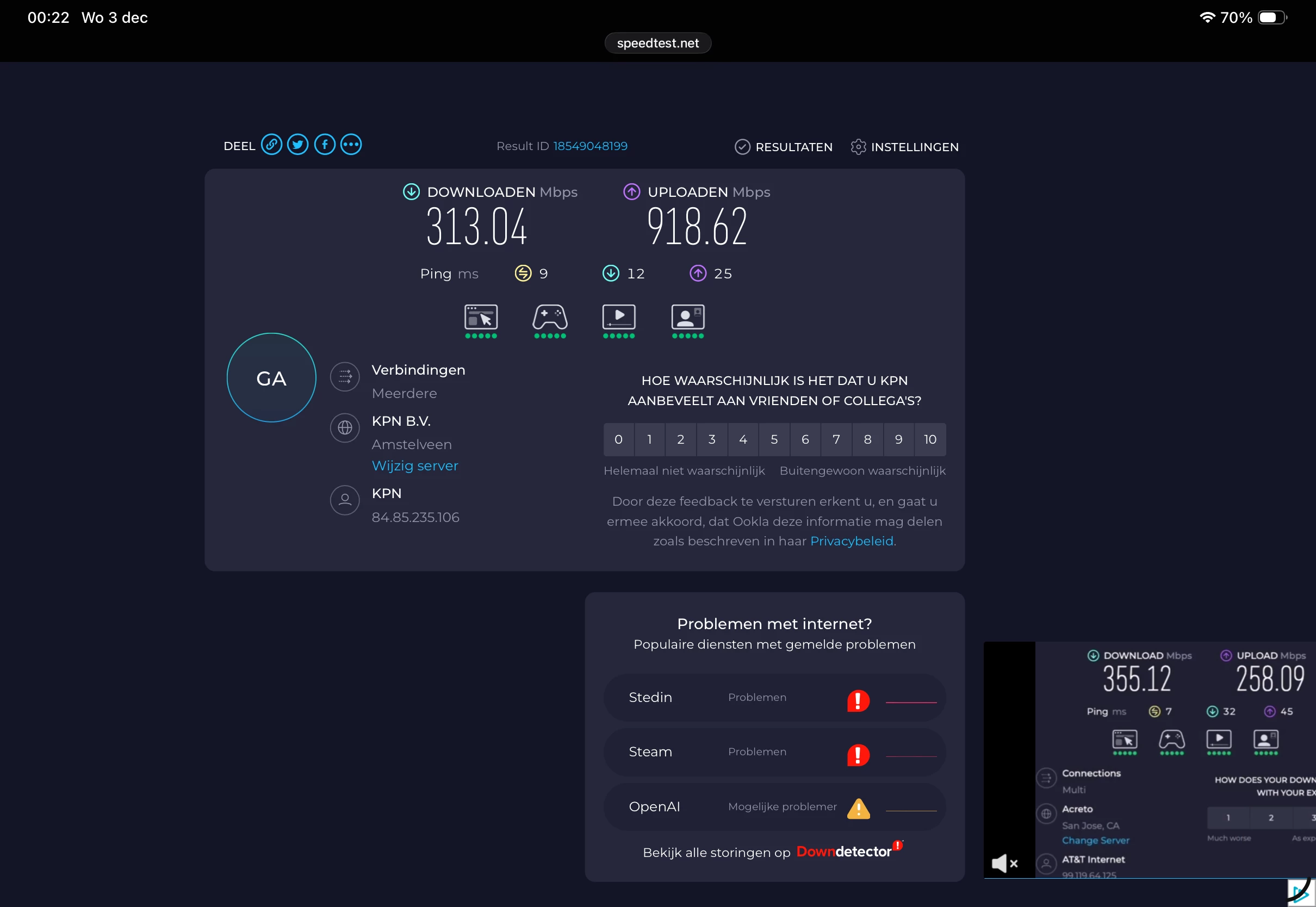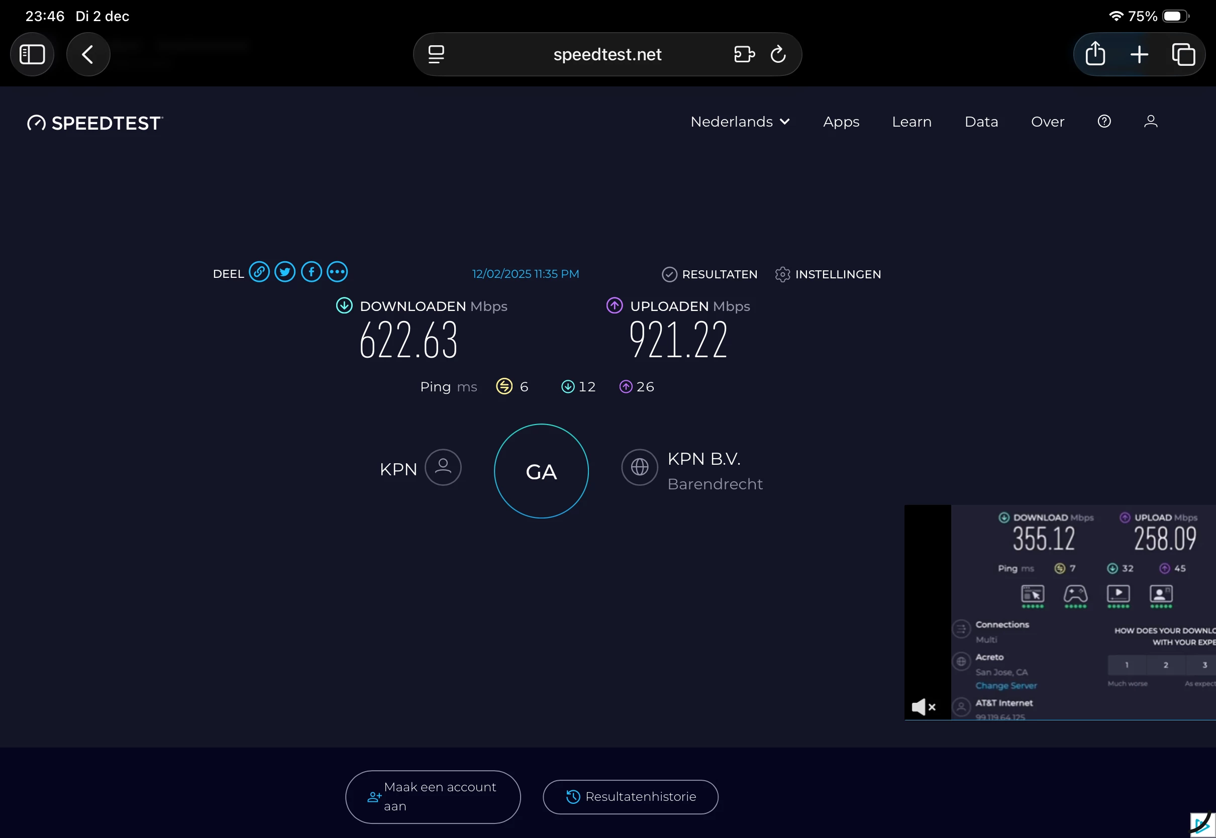KPN app gebruikt als testserver Amstelveen, Ookla Barendrecht. Kies bij Ookla ook eens Amstelveen en vergelijk dan nog eens.