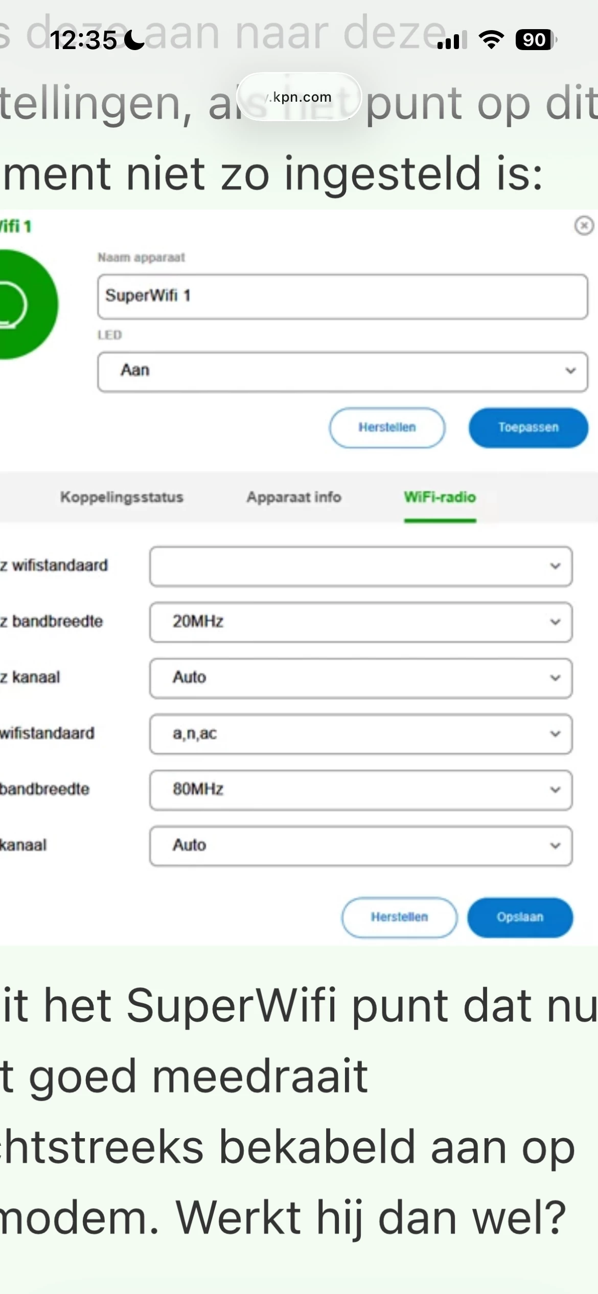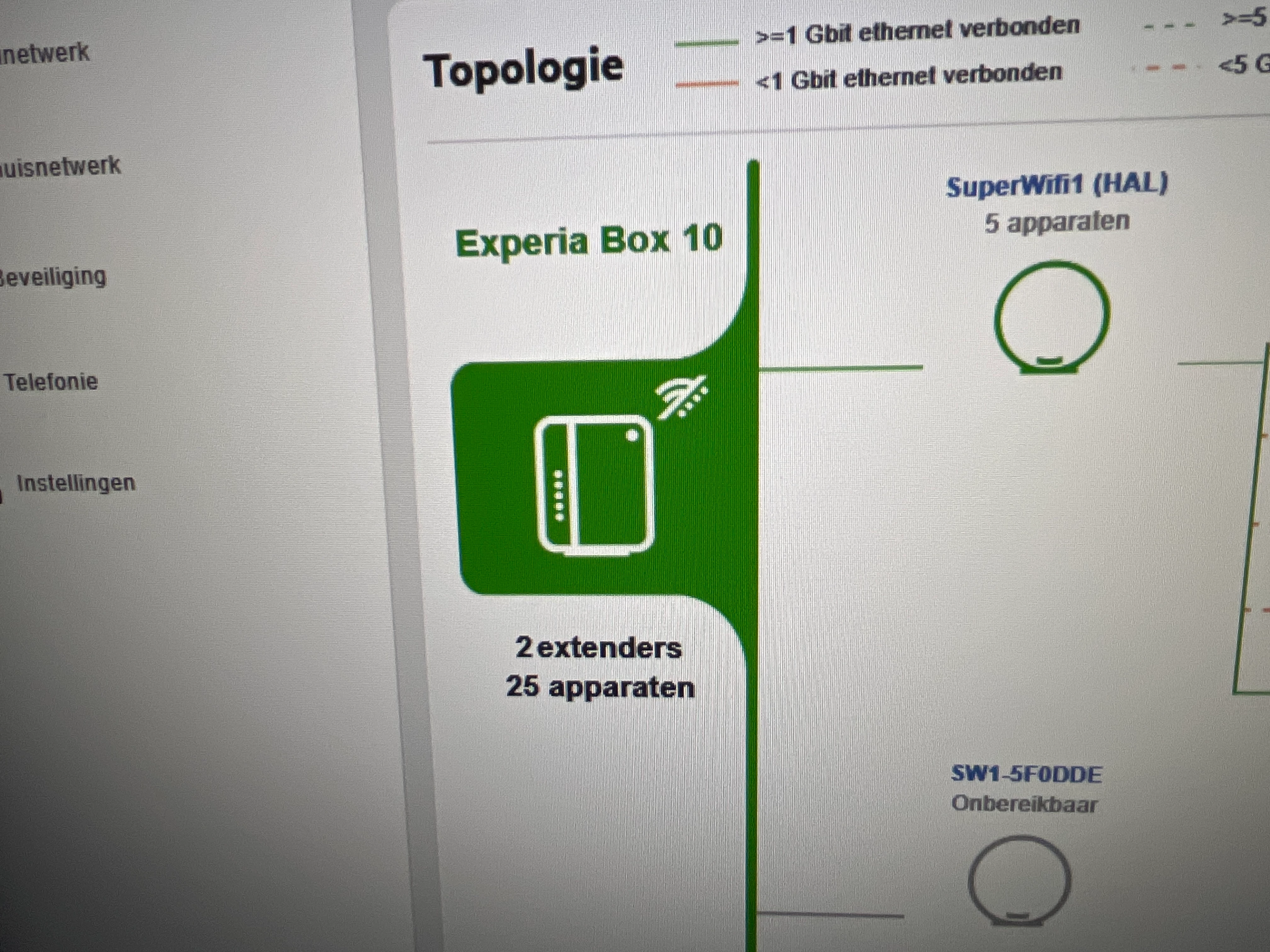 Het klopt in ieder geval dat er wel wat gewijzigd is qua netwerkconfiguratie. De masterpositie is verhuisd van één van de bekabeld aangesloten SuperWifi 1 punten naar de V10 en de V10 doet nu ook mee als Wifi punt En de backhaul gaat nu alleen via het 5 GHz-signaal. Maar dat laatste is wat minder van toepassing op jouw bekabeld aangesloten SuperWifi punten. Wel lastig dat één van je SuperWifi uitvalt na zoveel uur aan gestaan te hebben. Dat zou eerlijk gezegd opgelost moeten zijn met de versie SW1.C.25.12.04 die jij nu zou moeten hebben. Kun je bevestigen dat je op deze versie zit? Dan kunnen we dat meenemen naar het modemteam.