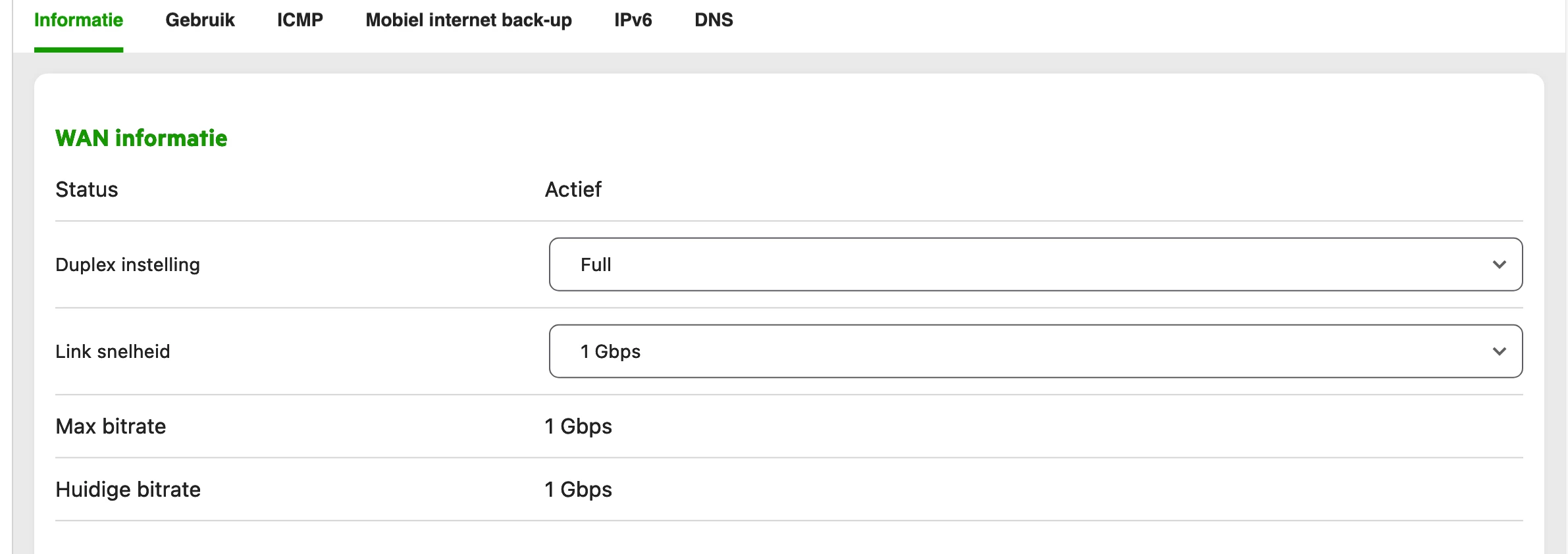 Er zat dus een probleem in de modem. De monteur heeft uiteindelijk de modem instellingen aangepast. De Duplex instelling en Link snelheid is aangepast zoals bijgevoegde afbeelding.