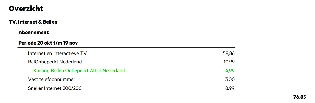 Maar de totale maandprijs zou hetzelfde gebleven moeten zijn. Dat zou je terug moeten kunnen vinden in Mijn KPN bij de facturen. Als het goed is, is de prijs van de factuur niet hoger geworden.