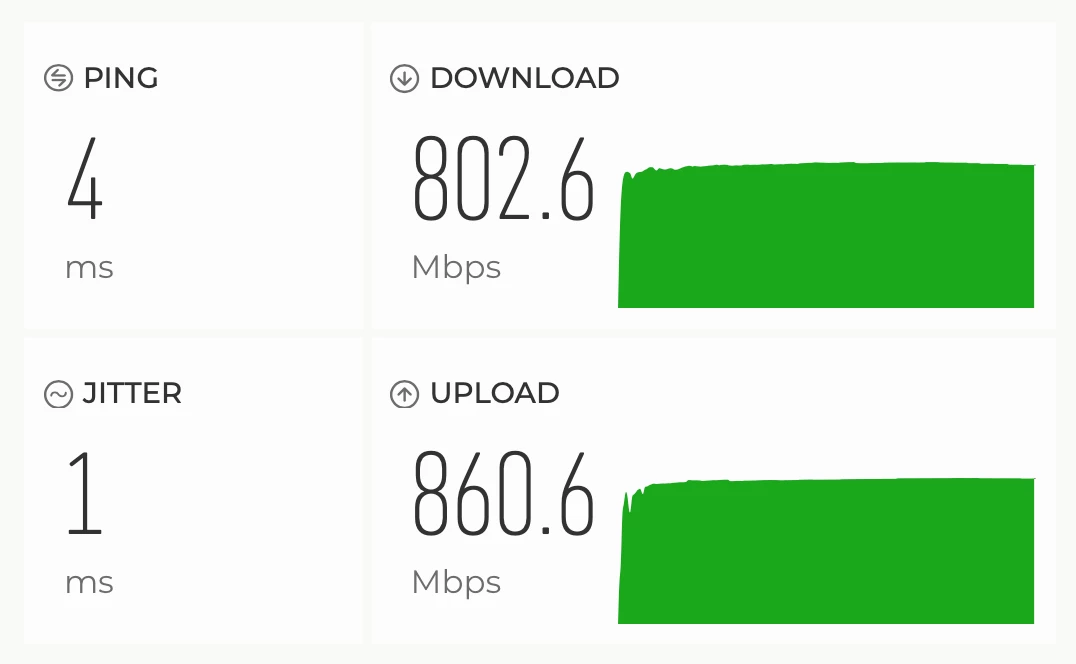 bedankt voor alle reacties, ik ga ze zo allemaal langs. Ik ben momenteel bezig met datasets downloaden van huggingface z’n kleine 2-3 tb van data. Bij het bekijken van de topolgy in unifi console rapporteert unifi bij mijn laptop tussen de 800mbps en het hoogste 2.11 gbps. Bij de homepagina wordt ook gerapporteerd van 850mbps met een max download van 2.51gbps