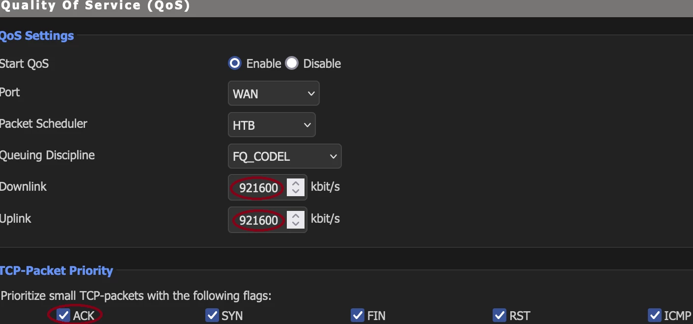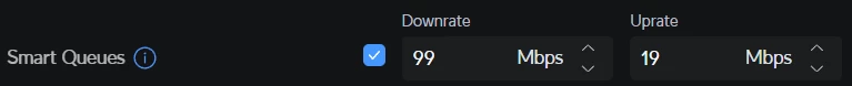 ik heb zelf ook een gelimiteerde VDSL verbinding. heb daarom deze instellingen net iets lager gezet dan de daadwerkelijke snelheid.