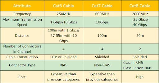 Hierbij de verschillen tussen cat 6, 7 en 8.