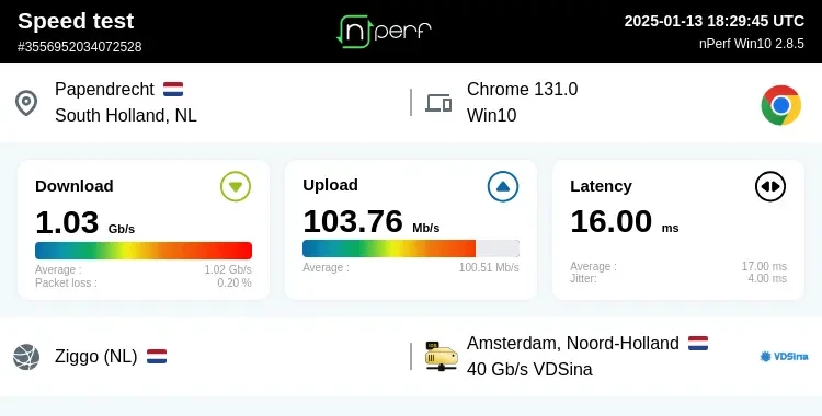Thx Michel ik ga een cat 8 kabel bestellen, vond het alleen raar dat de download 4000 is en de upload beneden de 1000 (750) is