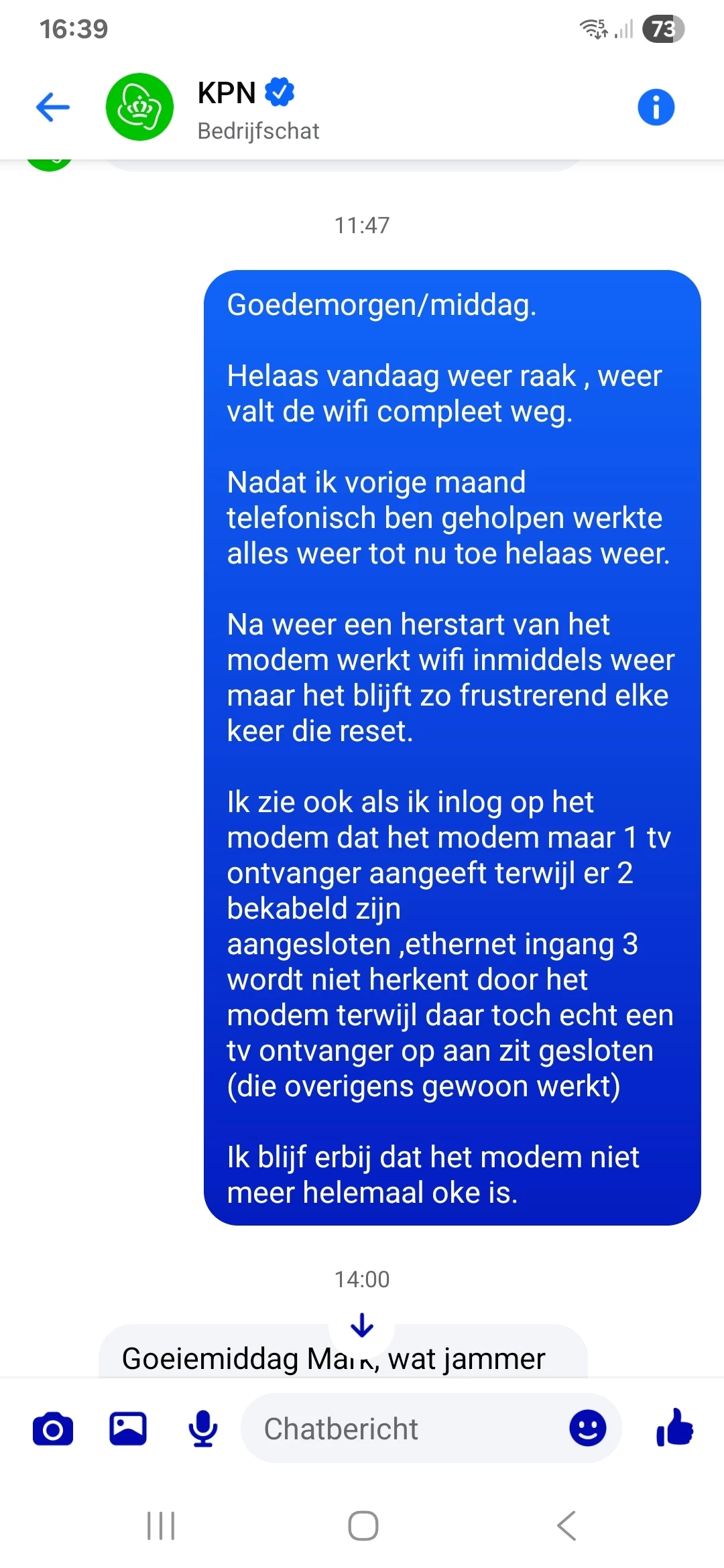 Ik voel me ook niet echt serieus genomen door de klantenservice , want krijg gewoon elke keer hetzelfde verhaaltje te horen (elke keer een link om het modem te resetten enz)