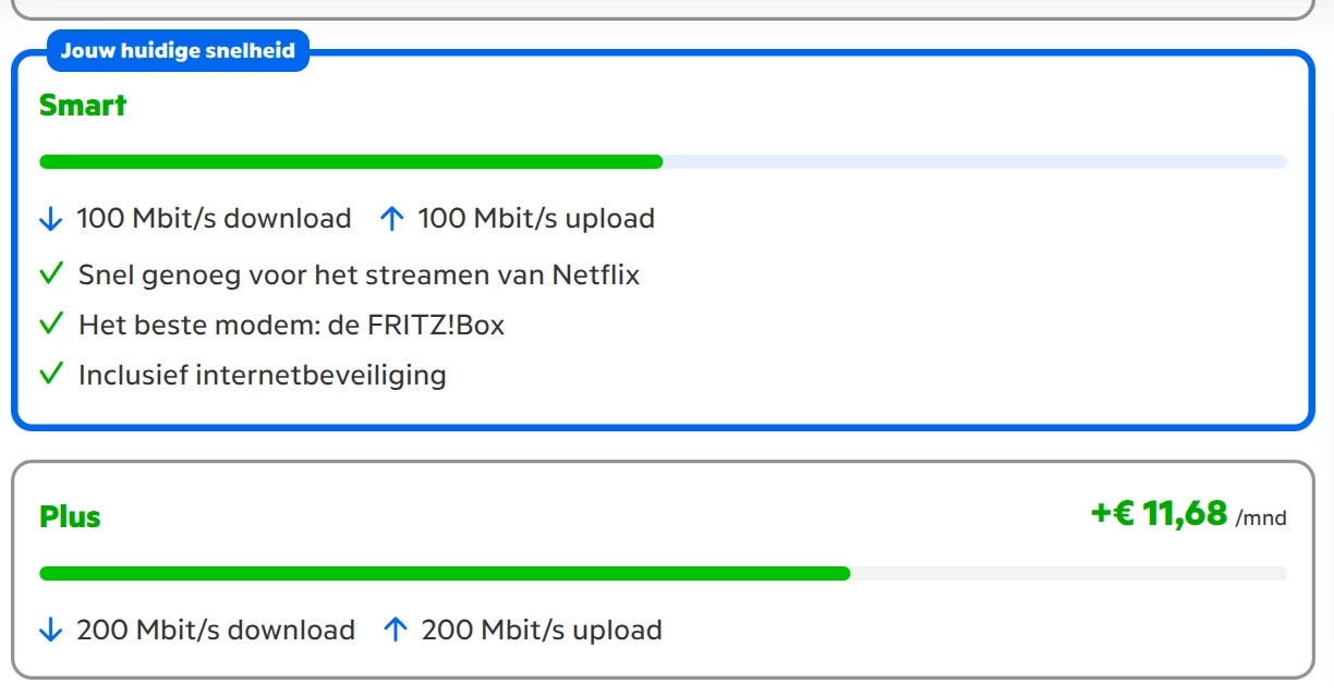 Upgrade naar 1 Gb/s kost vreemd genoemd net zo veel, dus ook € 11,68. Raar hé!
