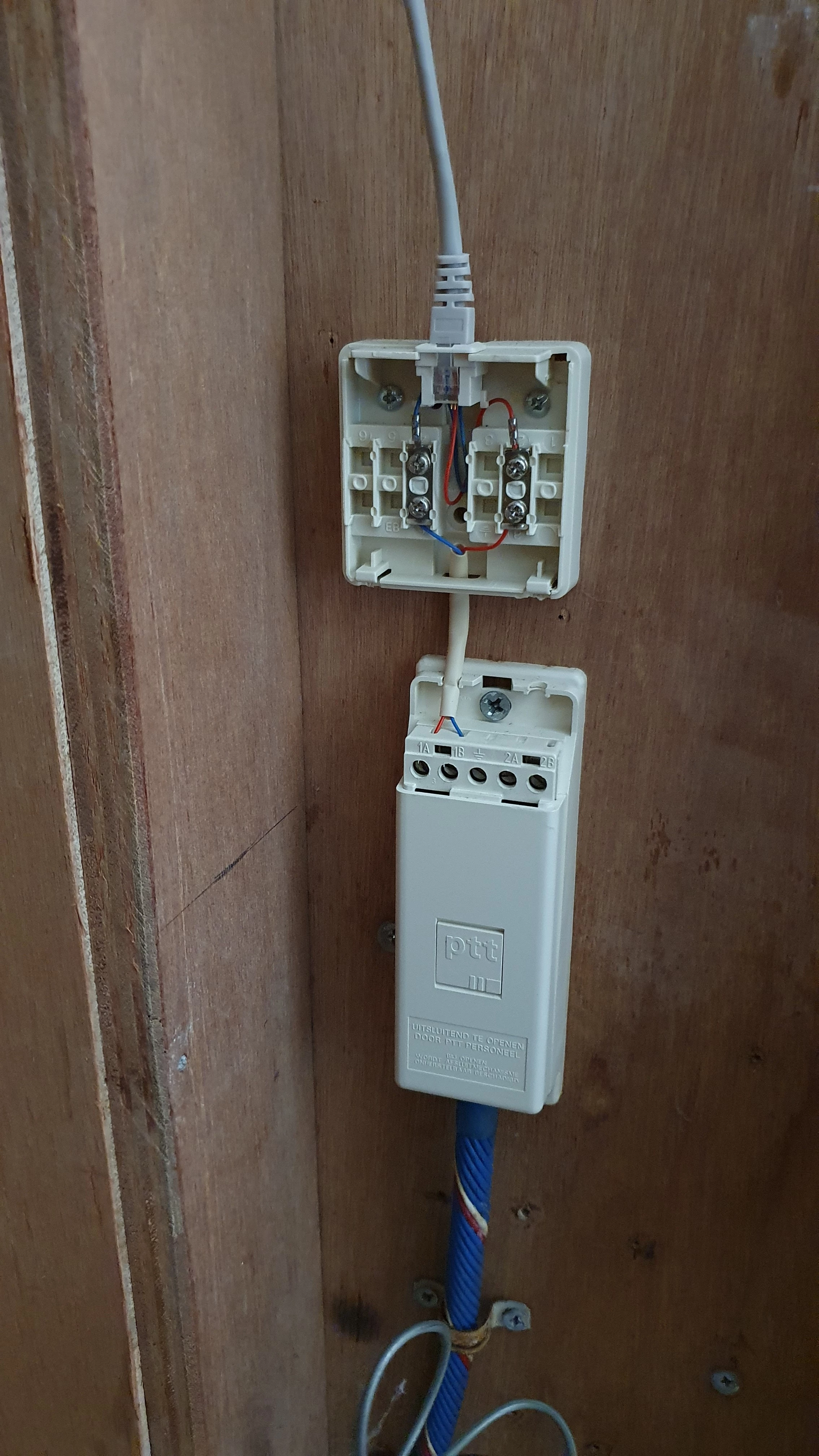 Het bovenste dekseltje even loshalen en dan op blauw en rood aansluiten ​@Jos HJ