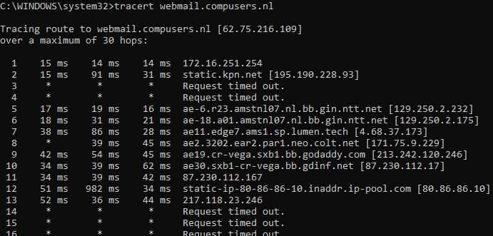 Onderstaand een trace naar webmail.compusers.nl vanaf mijn KPN aansluiting.