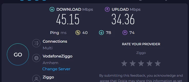 @JB22_  zoals je vroeg zojuist de Speedtest gedaan. Dit 3x uitgevoerd en kreeg deze resultaten: